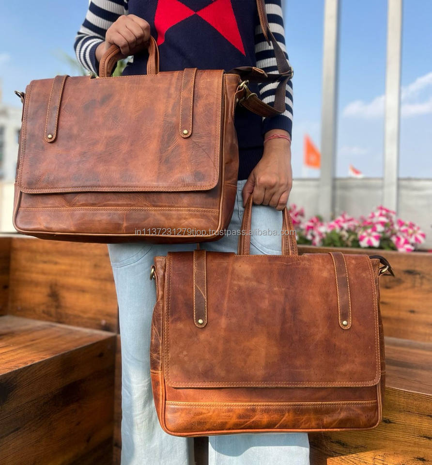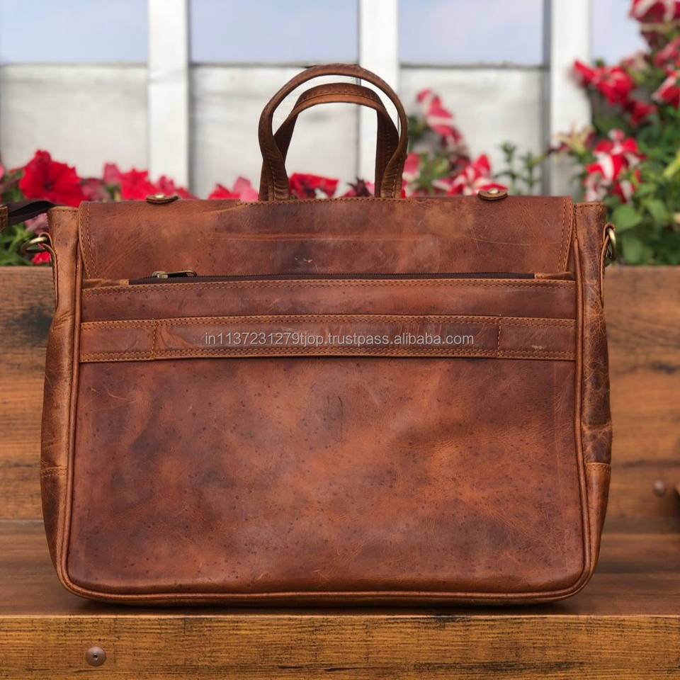 New Arrival Handmade Full Grain Crunch Leather Messenger Shoulder Bags Multi Uses Hot Selling High Quality Unisex Laptop Bags