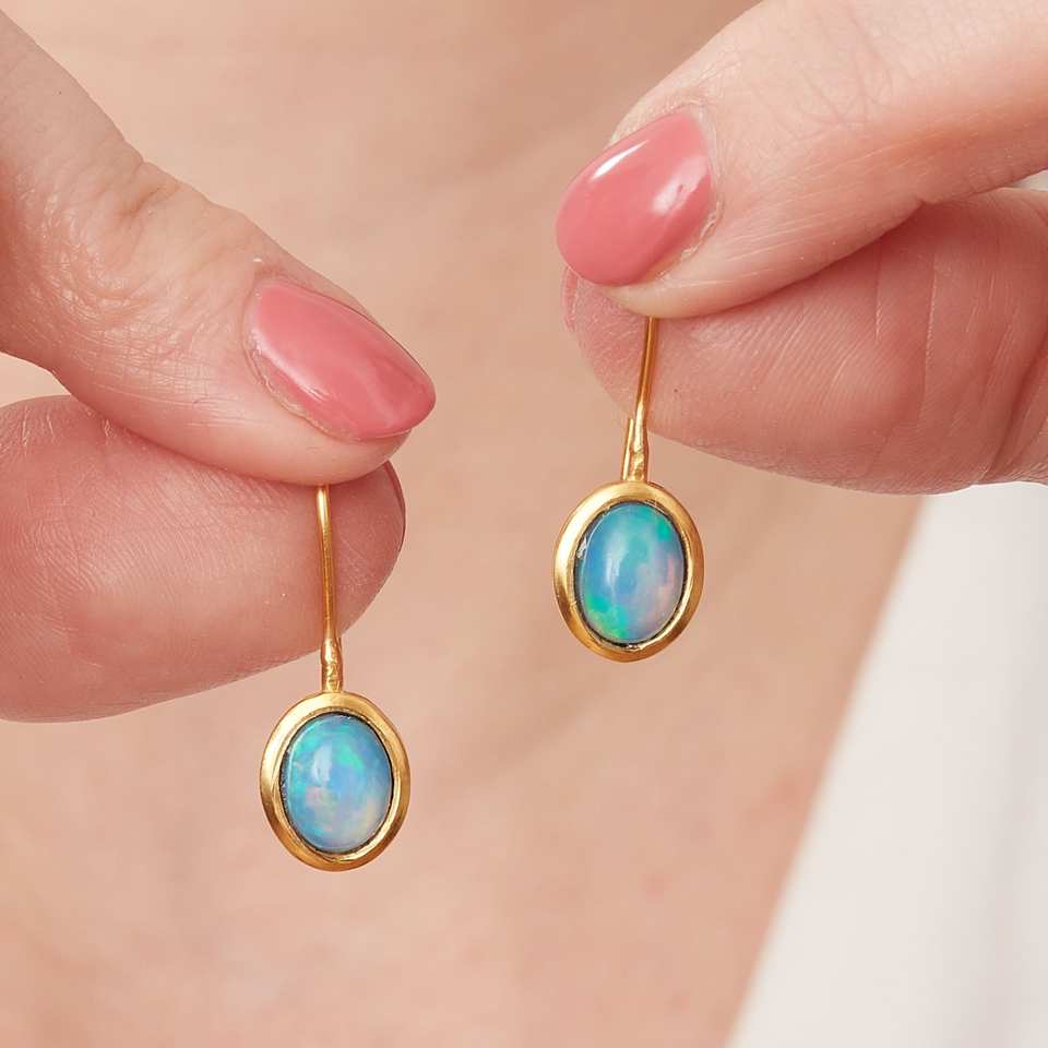 New Arrival Handmade Natural Opal Gemstone Vintage Wedding Gift Trendy Fashion Women Drop Earrings Solid Statement Classic Gold