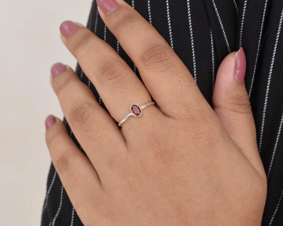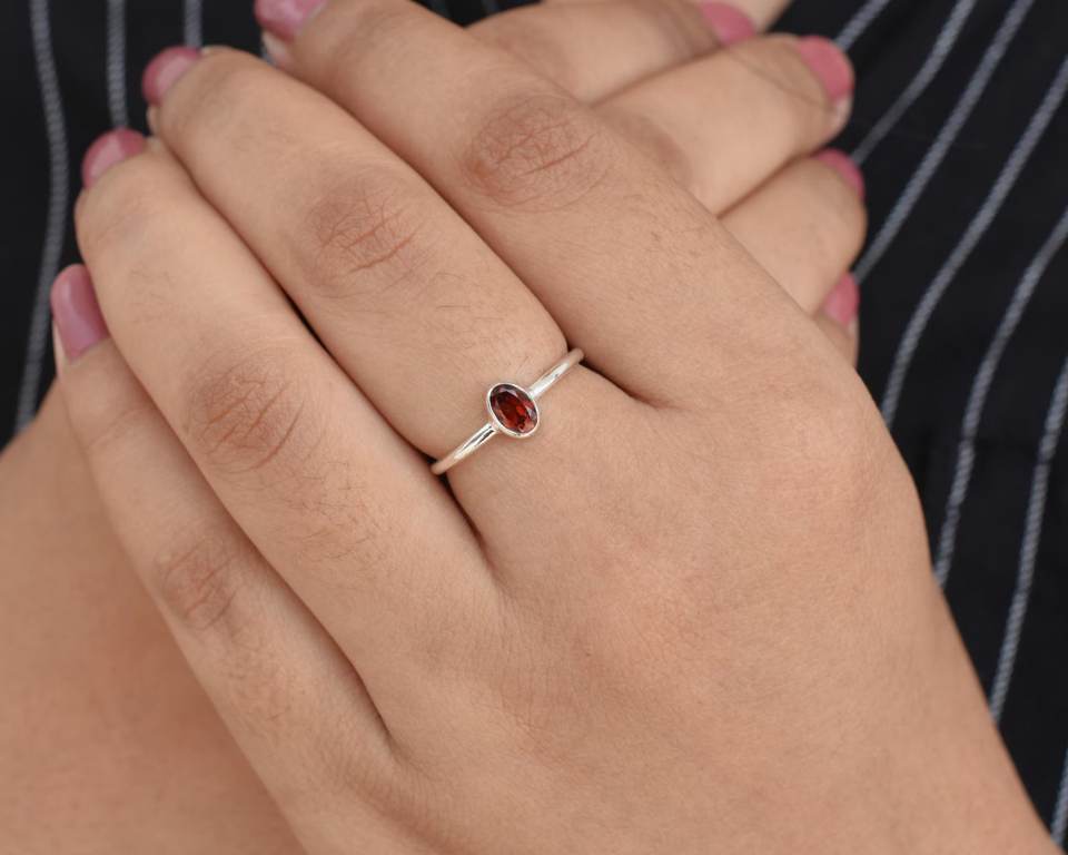 New Arrival Handmade Red Garnet Oval Bezel Ring 4x6 mm 925 Sterling Silver Jewelry Natural Gemstone Ring Gift for Women