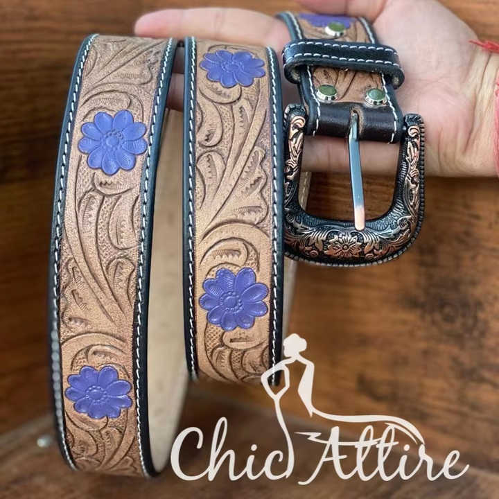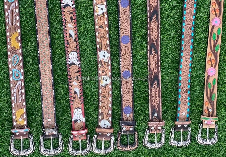 New Arrival Handmade Tooled Leather Belts Western Genuine Leather Belts Custom High Quality Cowboy & Cowgirl Cowhide Floral Belt