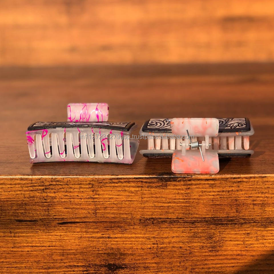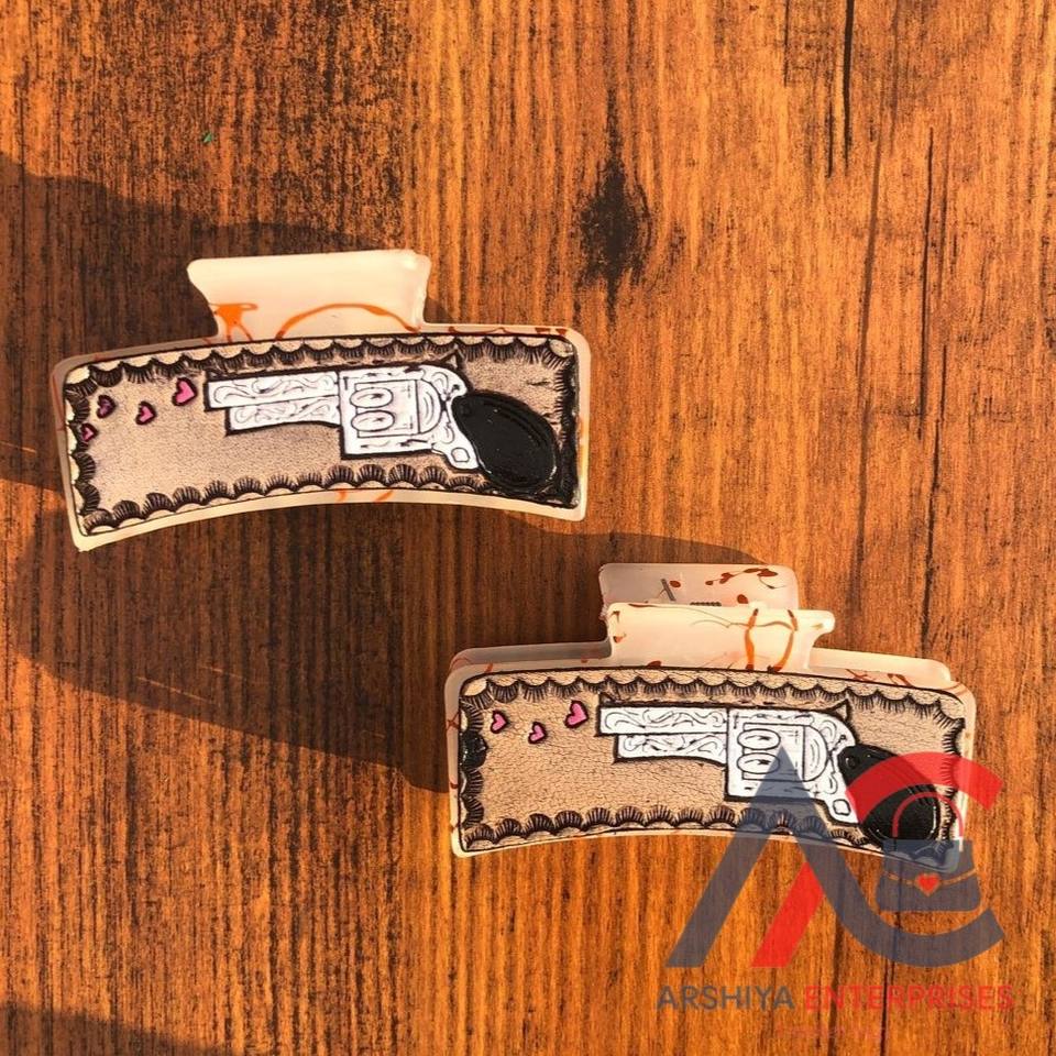 Engraved Leather Hair Claw Clips