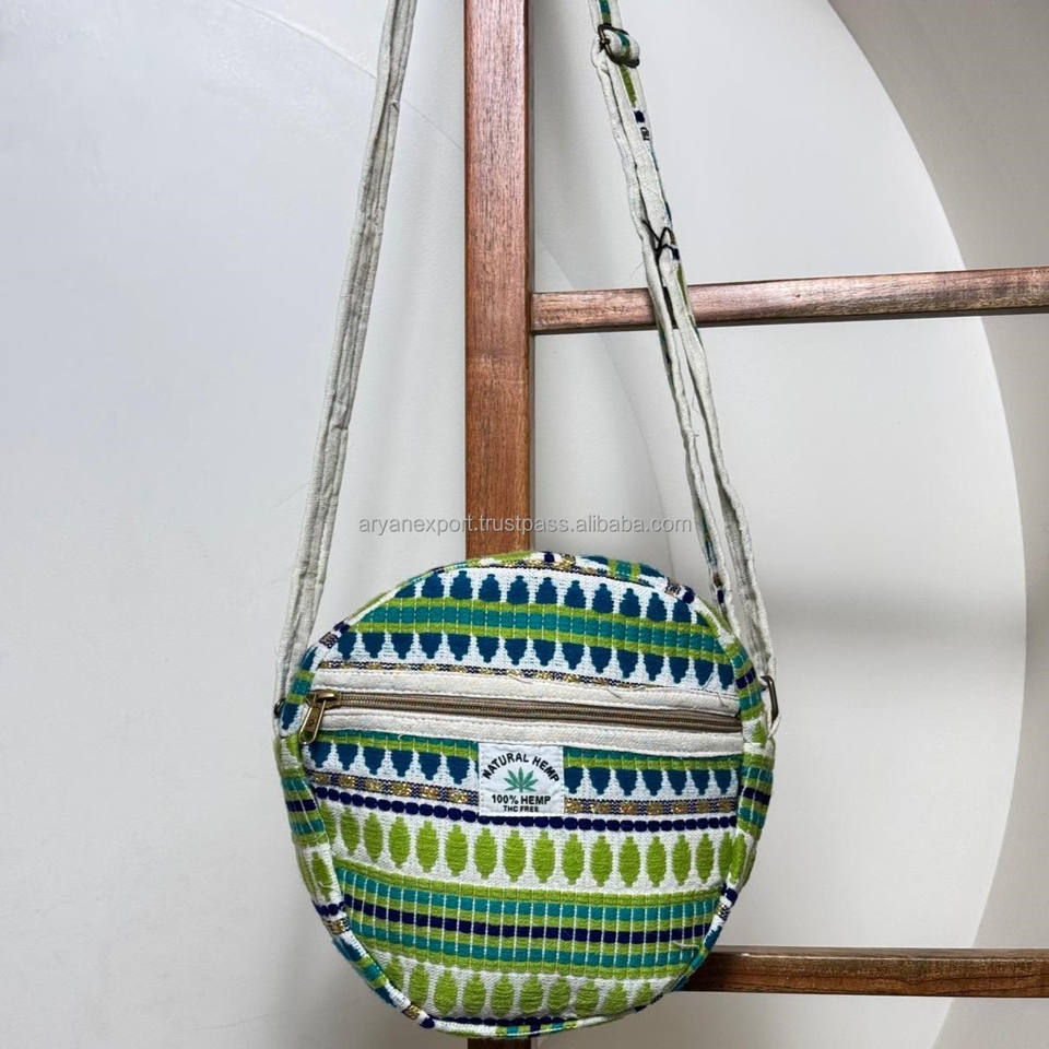 Designer Himalayan Round Hemp Crossbody Bag Handmade Eco-Friendly Sling Bag with Zipper Boho Travel Shoulder Bag for Women & Men