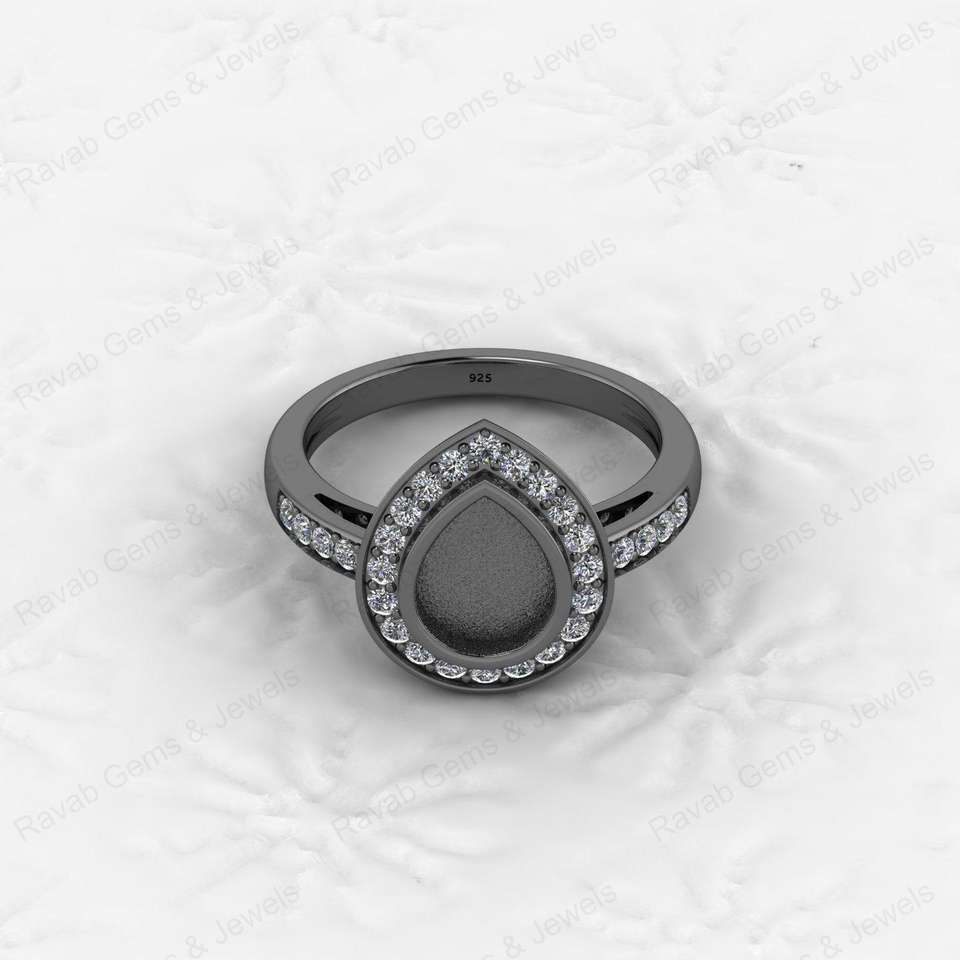 New Arrival High Quality 925 Sterling Silver Bezel 7x9mm Pear Shape CZ Semi Mount Blank Setting Wedding Ring Breastmilk Jewelry