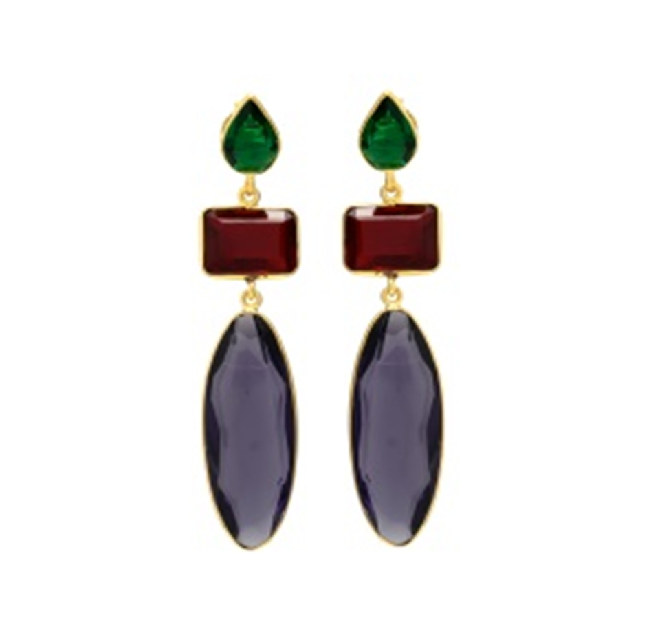 New Arrival High Quality Design 14K 18K 24K Matte Gold Plated Brass Multistone Gemstone Drop Dangle Earrings