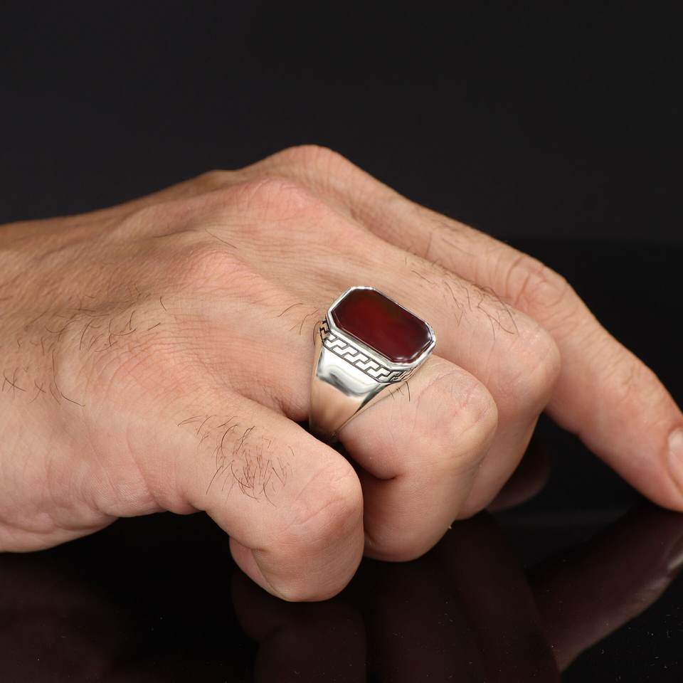 New Arrival High Quality Turkish Luxury Mens Wedding Ring 925 Sterling Silver Bezel Setting Natural Stone Wholesale Jewelry