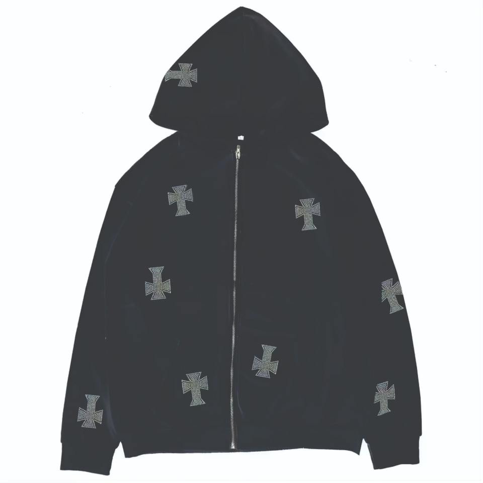 New Arrival High Quality Winter Hooded Solid Rhinestone Tracksuits Patchwork Embroidery Reversible Design Breathable Fabric for