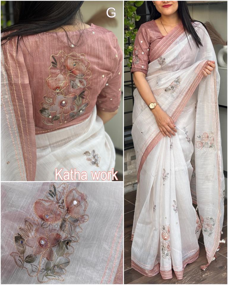 Work:Digital Print And katha Gotta Patti Mirror & Position Zari Work