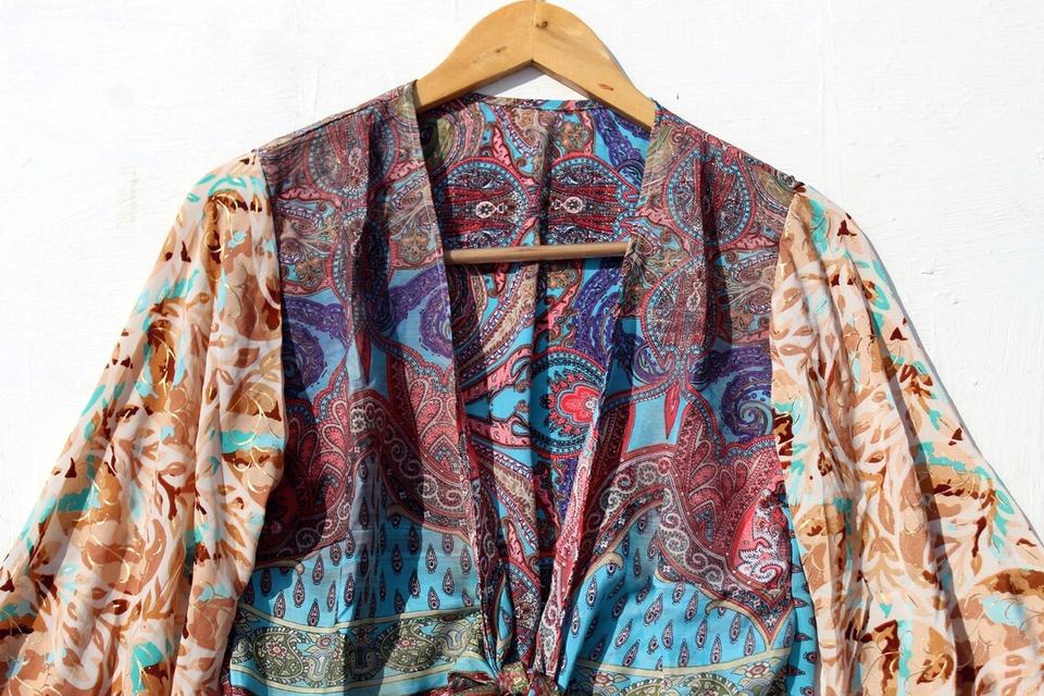 New Arrival Hippie Beach Wear Silk Tie Top Bell Sleeve Cardigan Crop Top Boho Top for Women Beach Wear