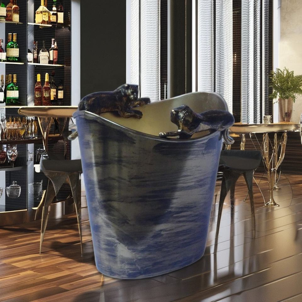 New Arrival Home Use Stainless Steel Wine Cooler with 2 Brass Lions India Champagne Wine Cooler Featuring PC Bar Tools