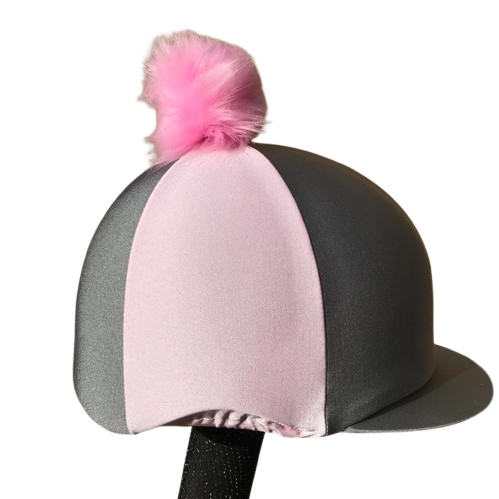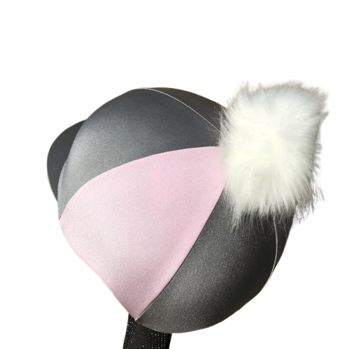 New Arrival Horse Riding Hat Silk Cover pink and Grey .Pom Poms Button Top Skull Cap or Pocket Peak, Horse Riding Silk Hats