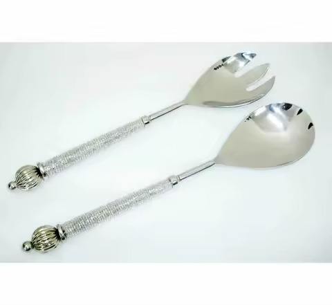 New Arrival Hot Selling Salad Server Set Stainless Steel Flatware Set with Resin Silver Cutlery with Plastic Handle Tea Cookware