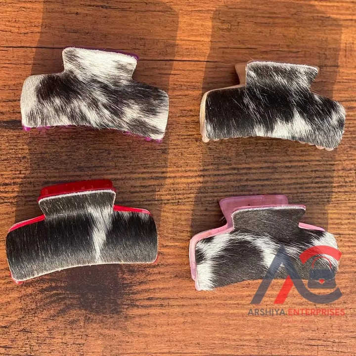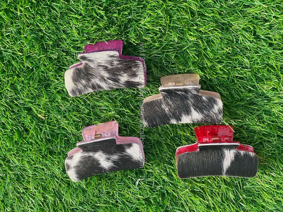 New Arrival Hot Selling Stylish Real Handmade Cowhide Fur Leather Claw Clip Personalized Hair Clip Leather Accessories for Women