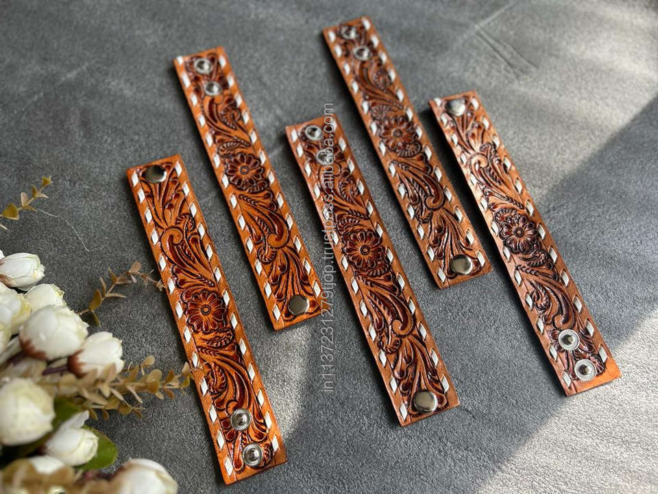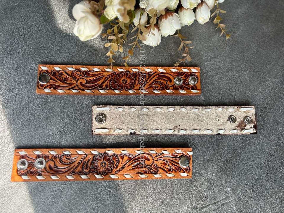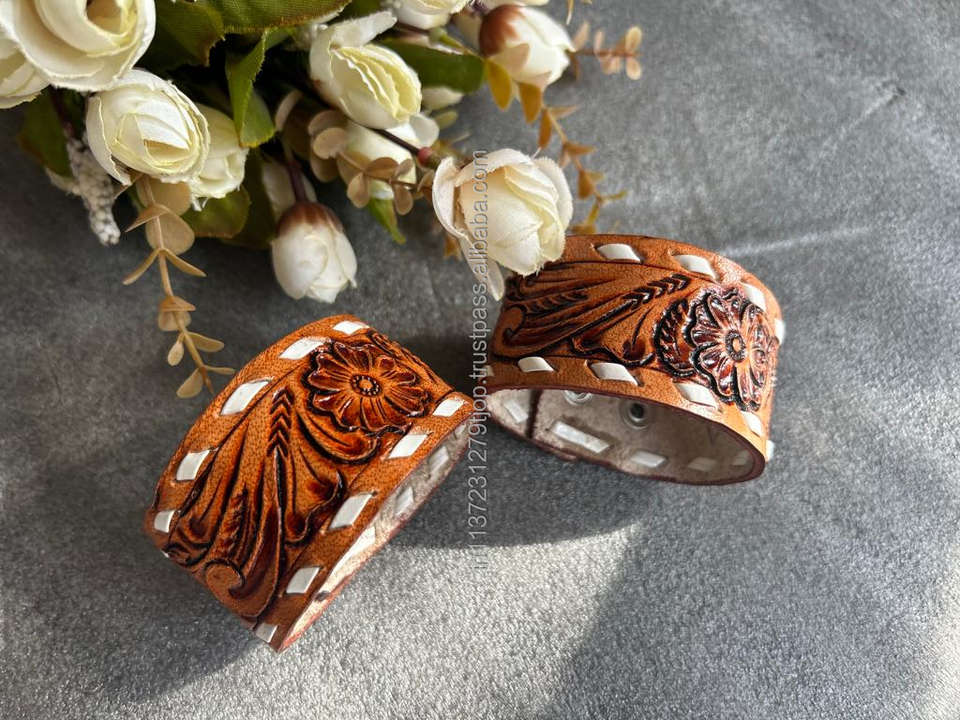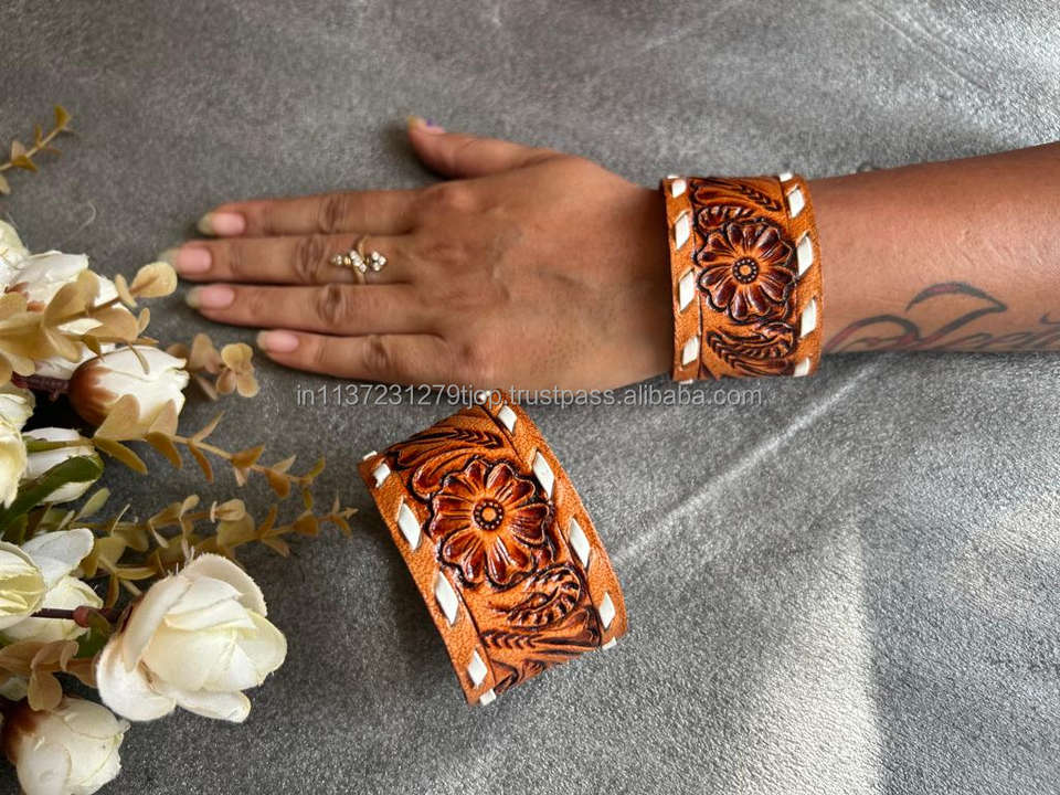New Arrival Hot Selling Western Stylish Handmade Painted Tooled Leather Hand Cuff Bracelets Unisex Daily Wear Fashion Accessory