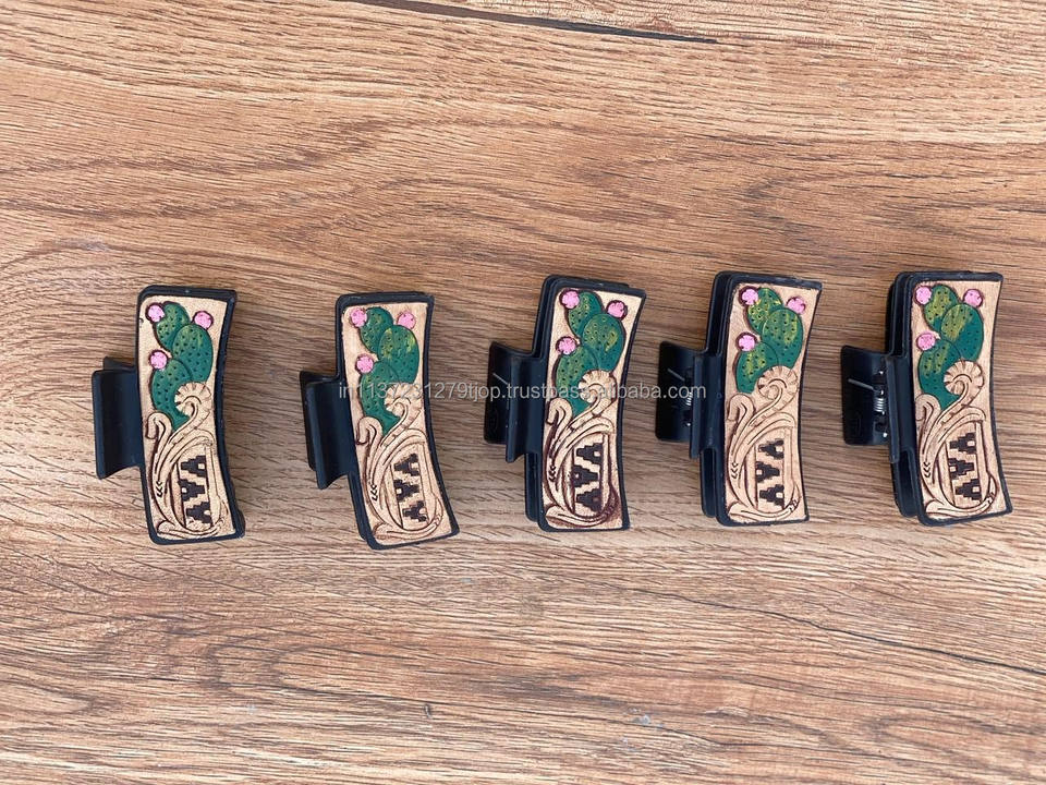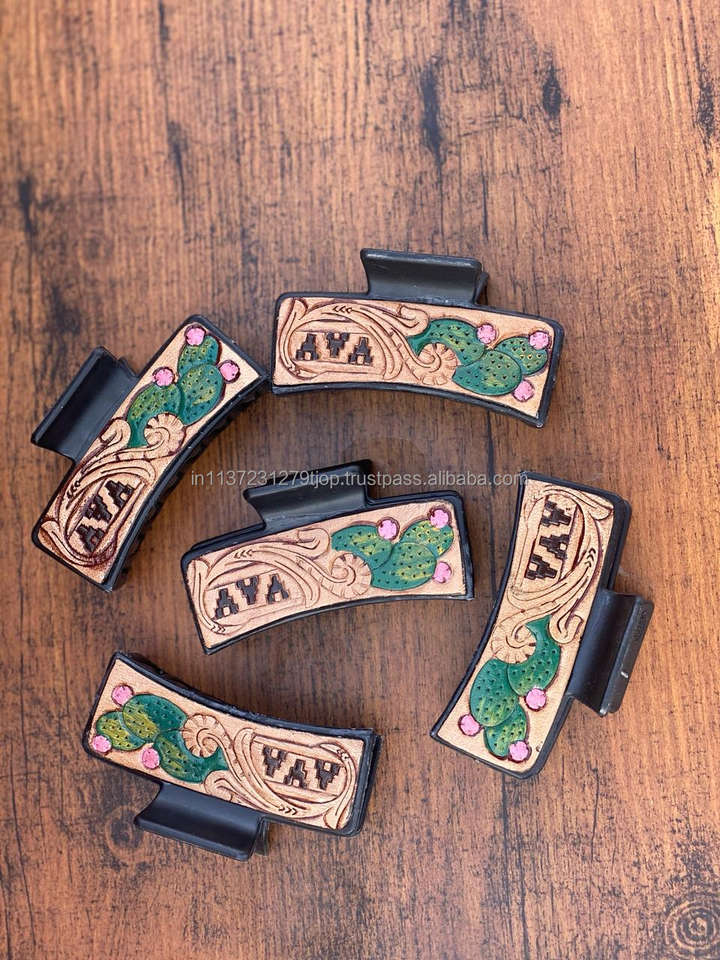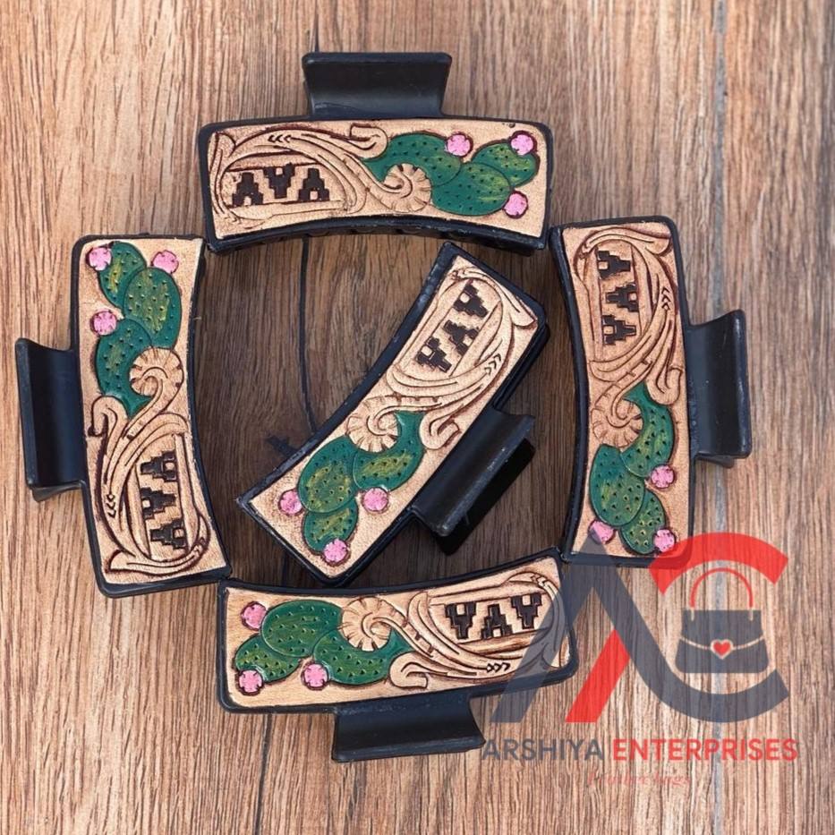 New Arrival Hot Selling Western Stylish Handmade Tooled Engraved Leather Hair Claw Clips Leather Claw Hair Accessories for Women