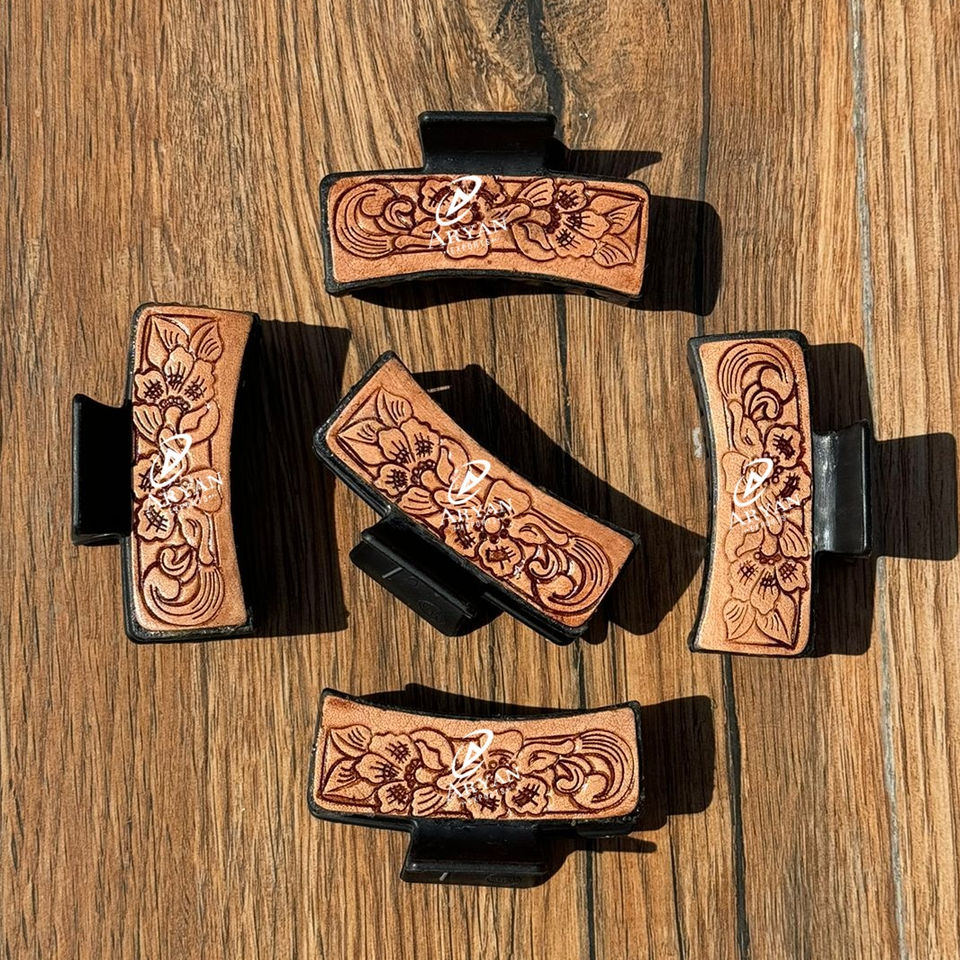 New Arrival Hot Selling Western Stylish Handmade Tooled Engraved Leather Hair Claw Clips Leather Claw Hair Accessories for Women