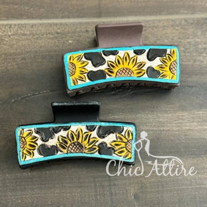 New Arrival Hot Selling Western Stylish Handmade Tooled Engraved Leather Hair Claw Clips Leather Claw Hair Accessories for Women