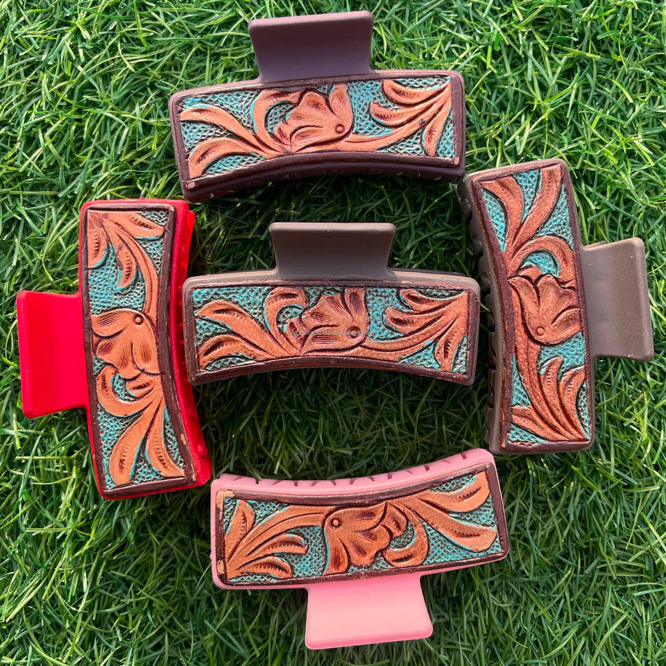 Product name:Hand Tooled Leather Women Hair Claw Clip