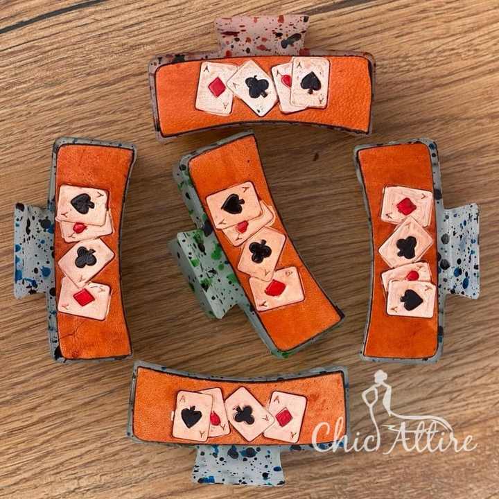 Engraved Leather Hair Claw Clips