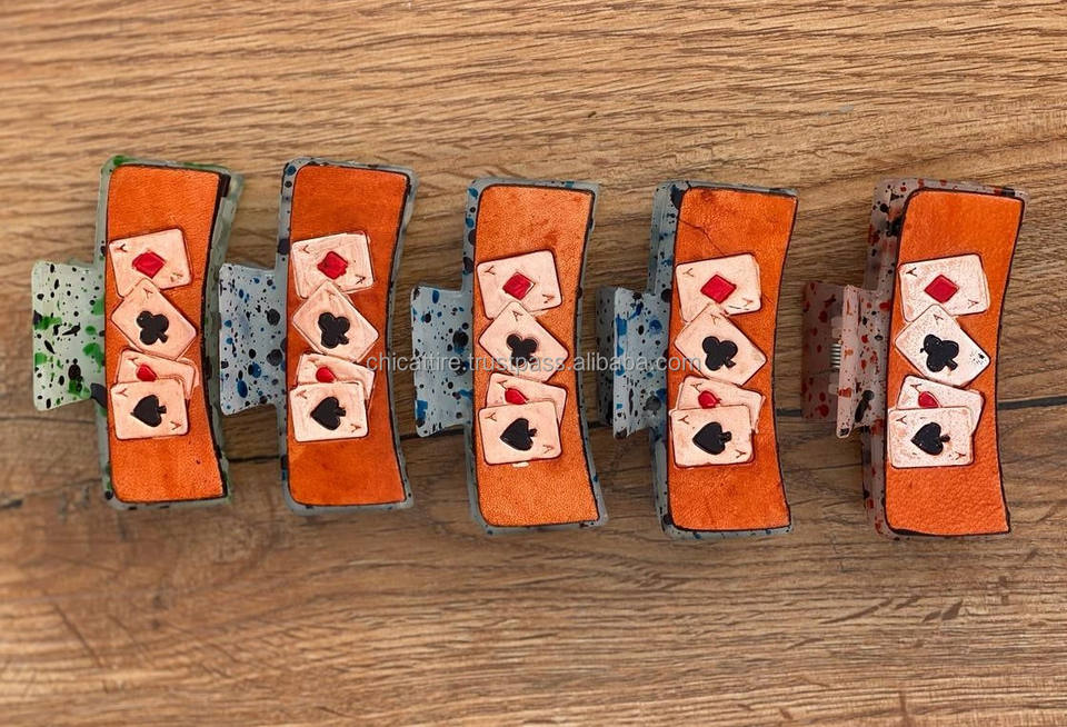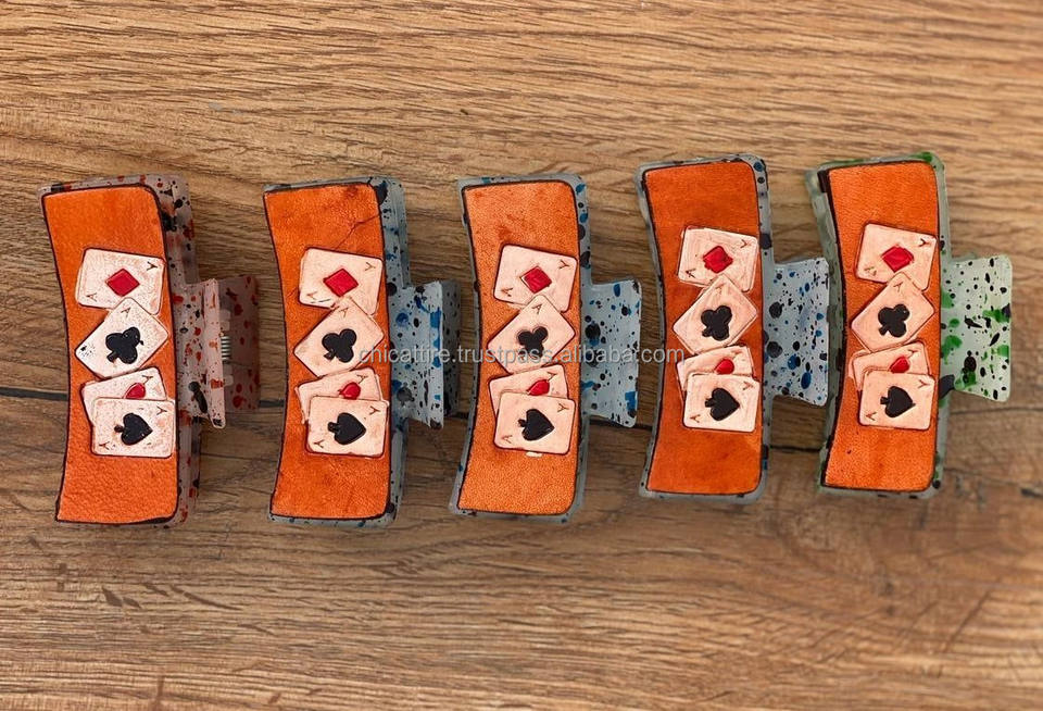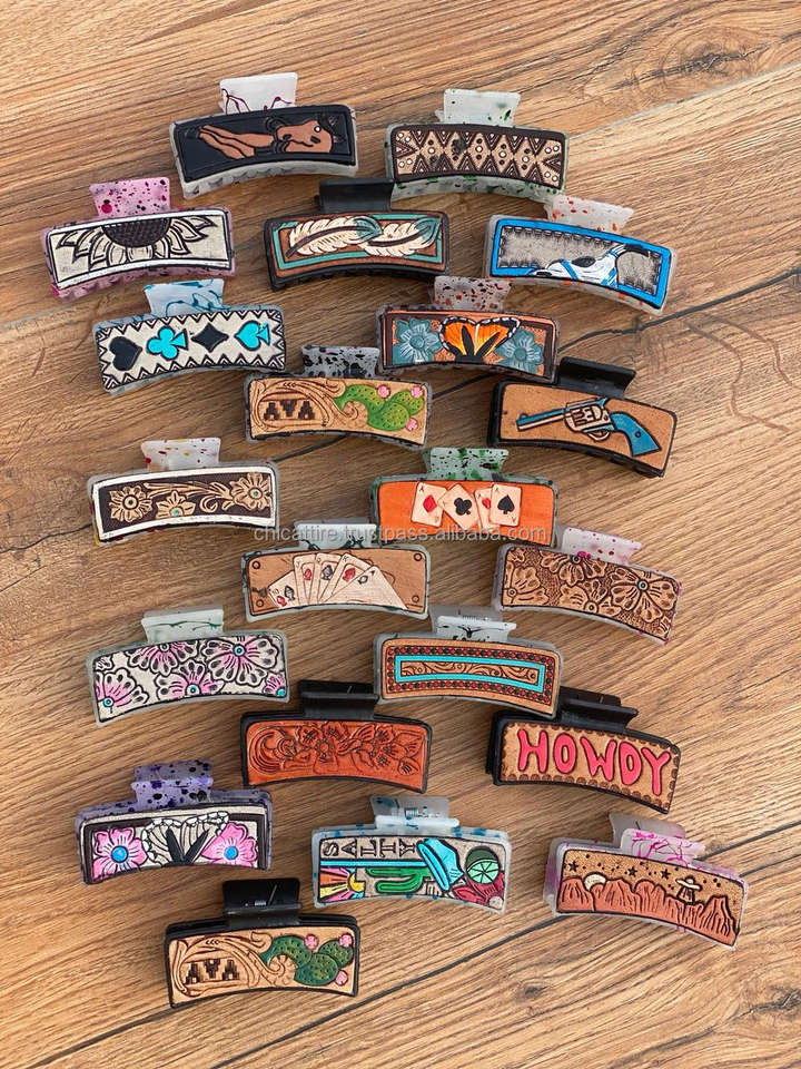 New Arrival Hot Selling Western Stylish Handmade Tooled Engraved Leather Hair Claw Clips Leather Claw Hair Accessories for Women