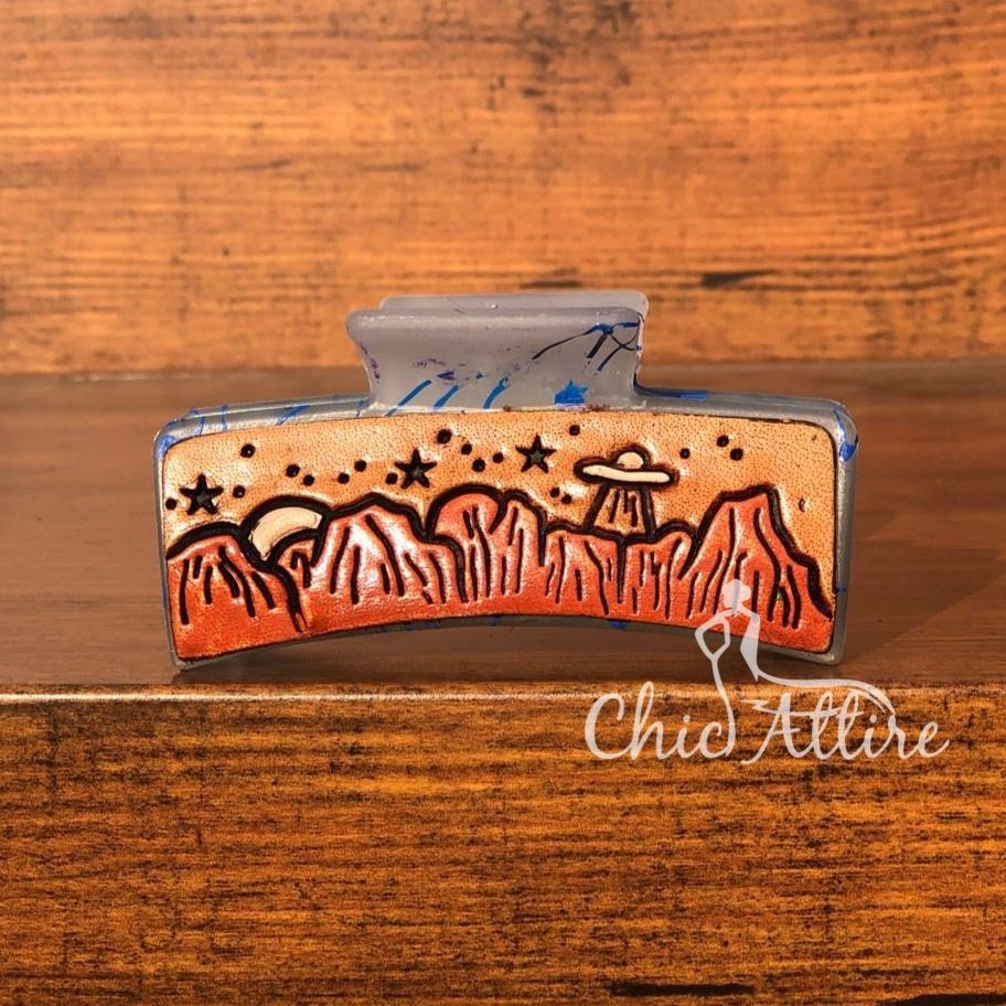 Engraved Leather Hair Claw Clips