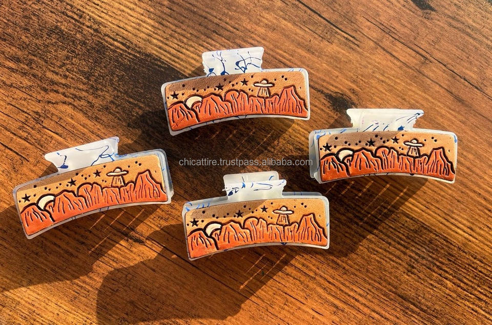 Product name:Engraved Leather Hair Claw Clips