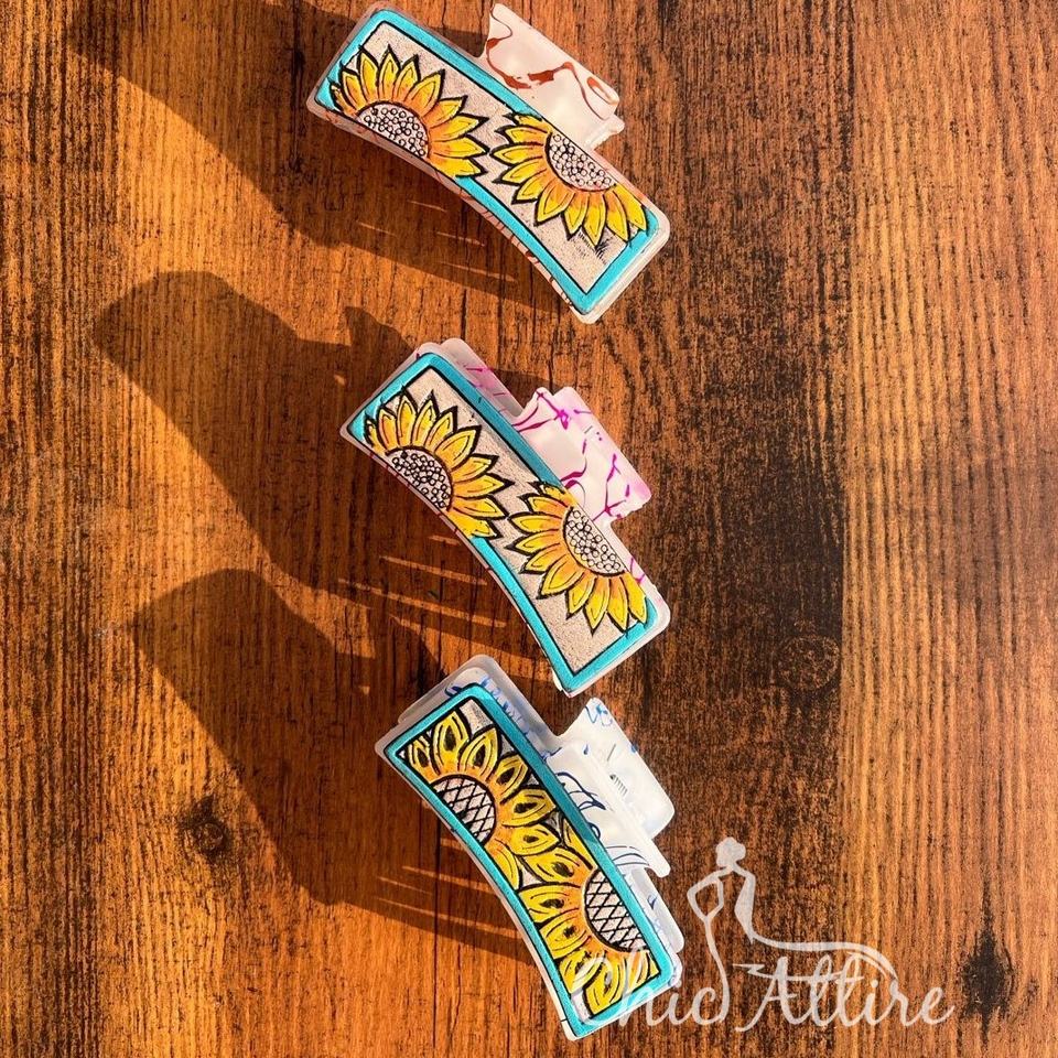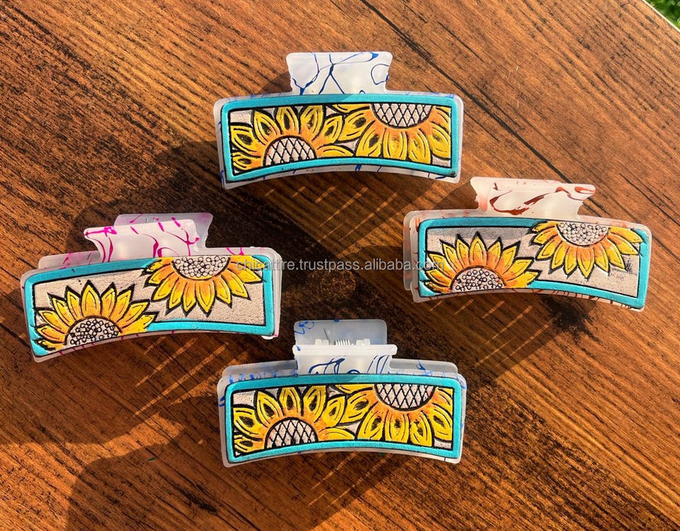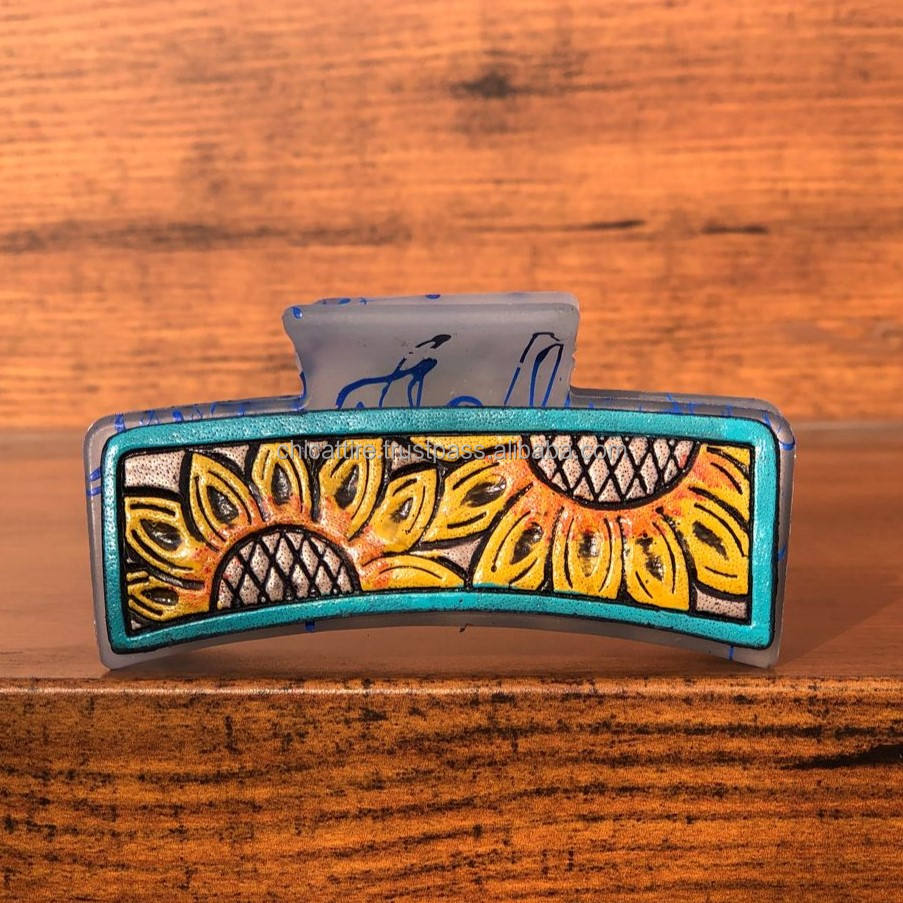 New Arrival Hot Selling Western Stylish Handmade Tooled Engraved Leather Hair Claw Clips Leather Claw Hair Accessories for Women
