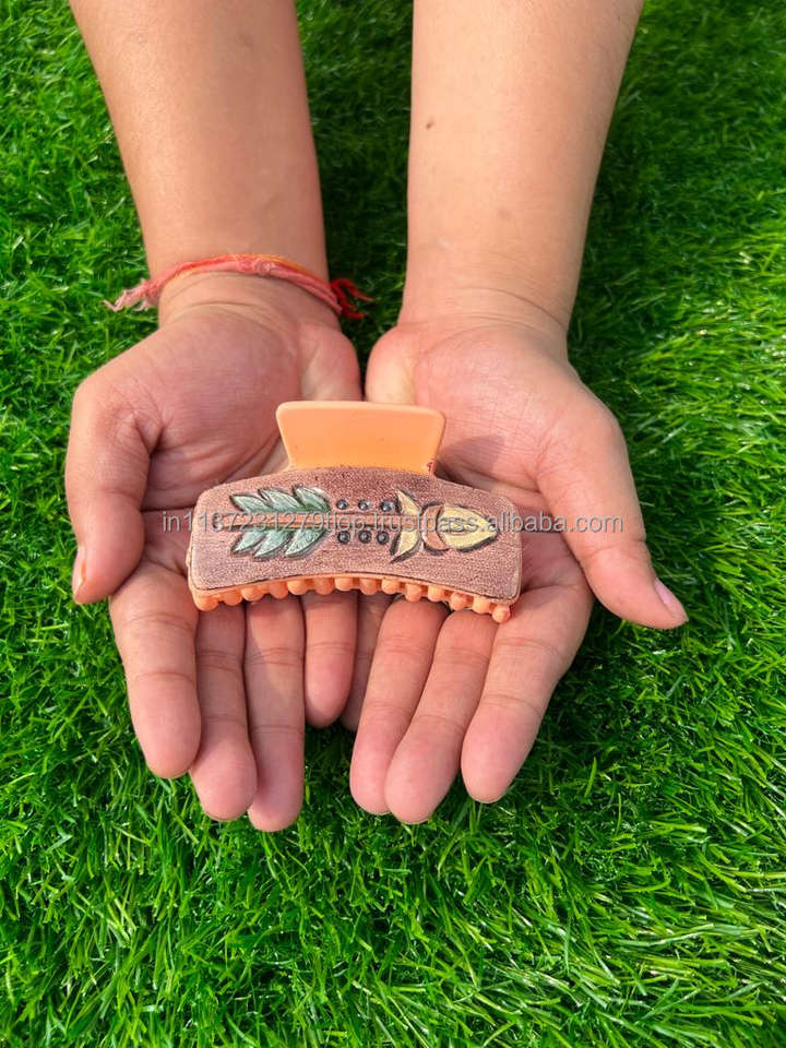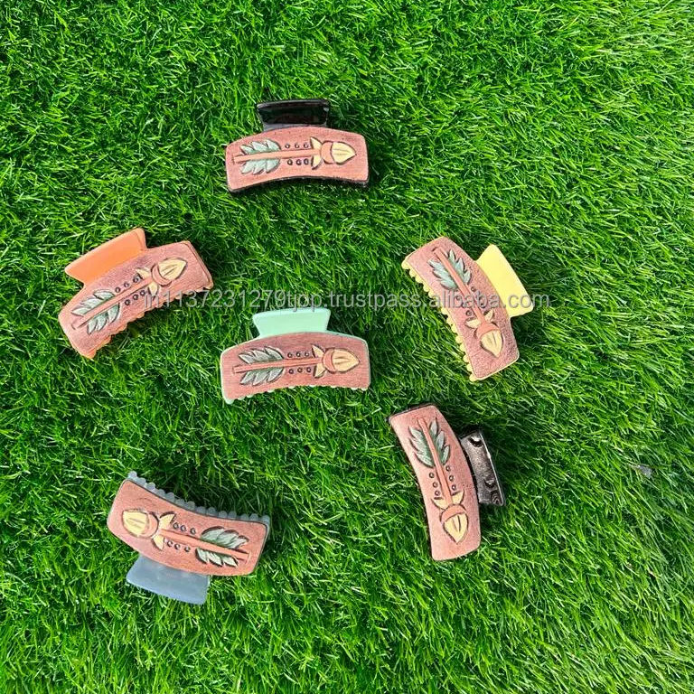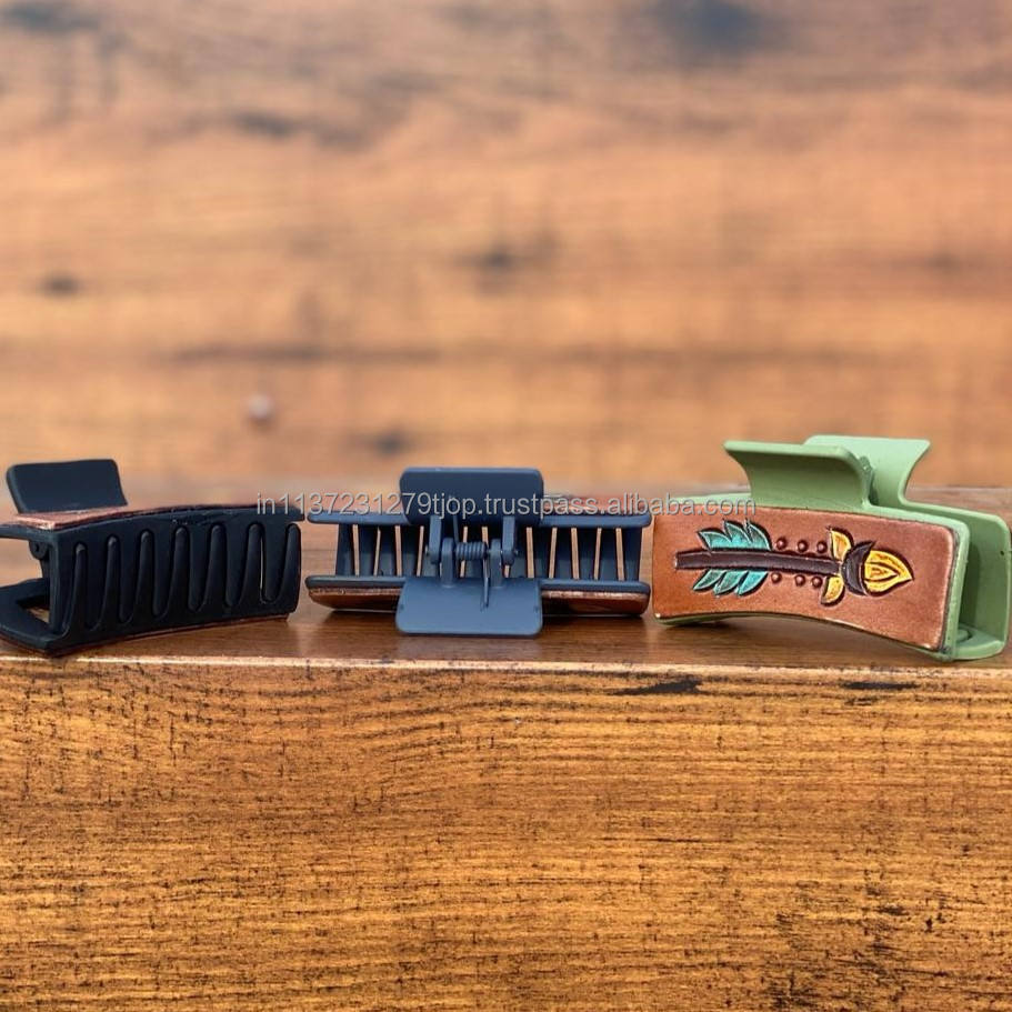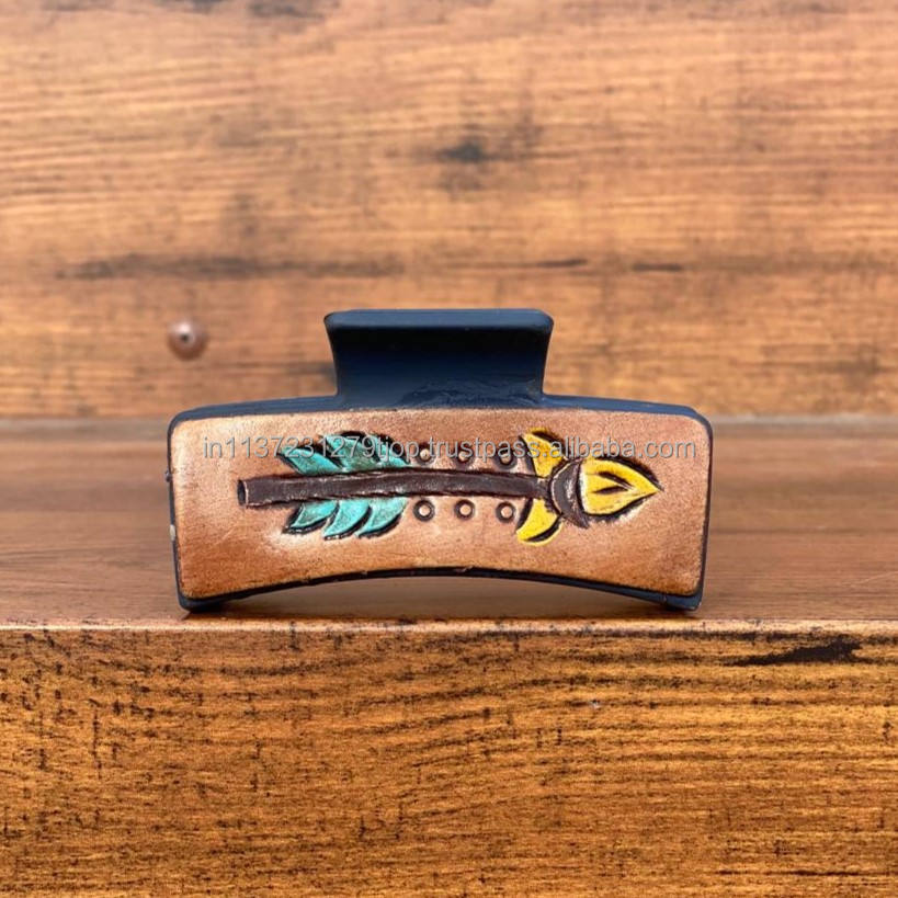 New Arrival Hot Selling Western Stylish Handmade Tooled Engraved Leather Hair Claw Clips Leather Claw Hair Accessories for Women