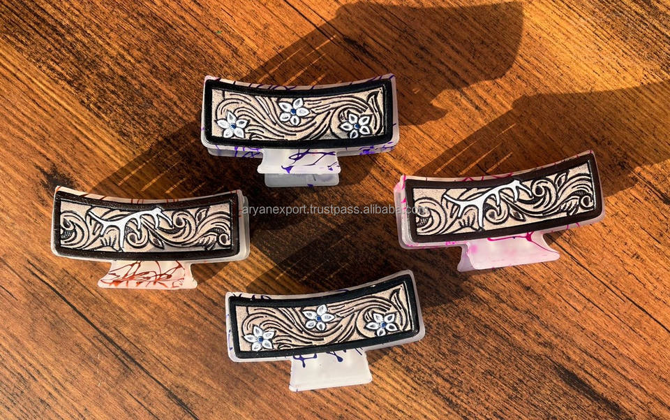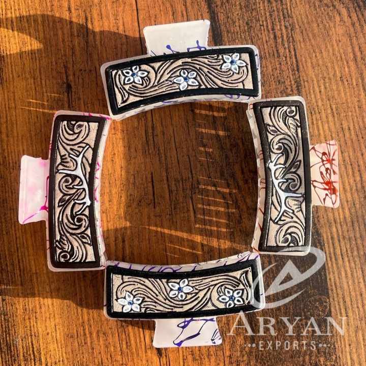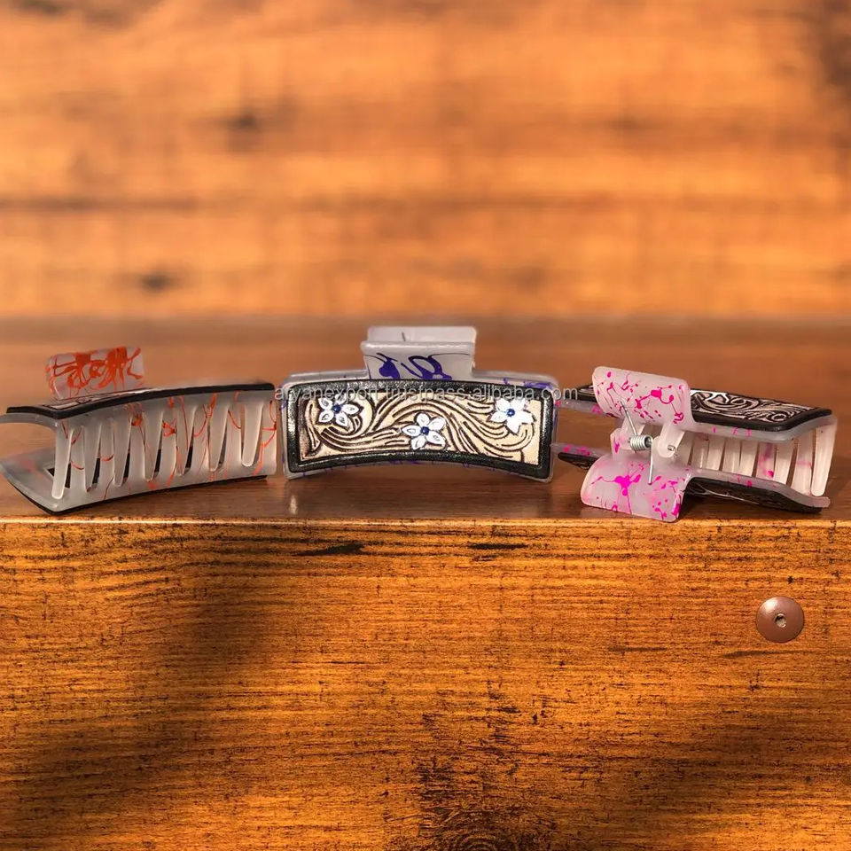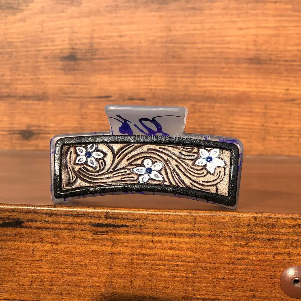 New Arrival Hot Selling Western Stylish Handmade Tooled Engraved Leather Hair Claw Clips Leather Claw Hair Accessories for Women