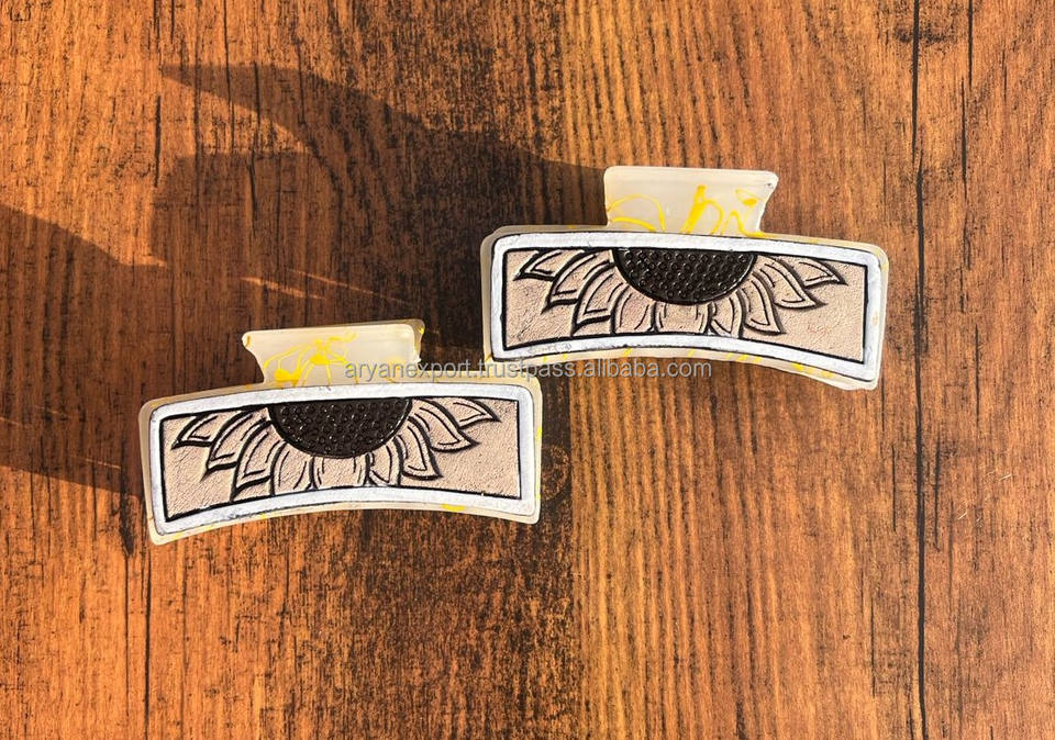 New Arrival Hot Selling Western Stylish Handmade Tooled Engraved Leather Hair Claw Clips Leather Claw Hair Accessories for Women