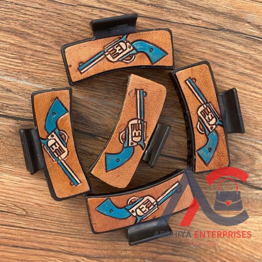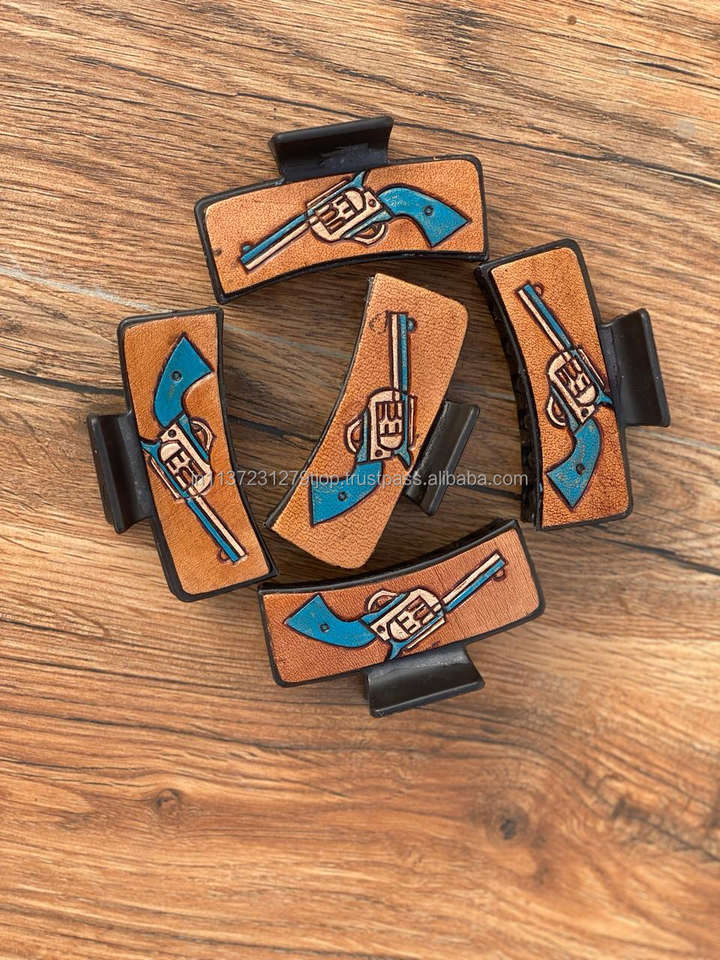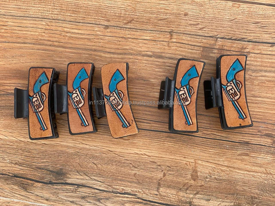 New Arrival Hot Selling Western Stylish Handmade Tooled Engraved Leather Hair Claw Clips Leather Claw Hair Accessories for Women