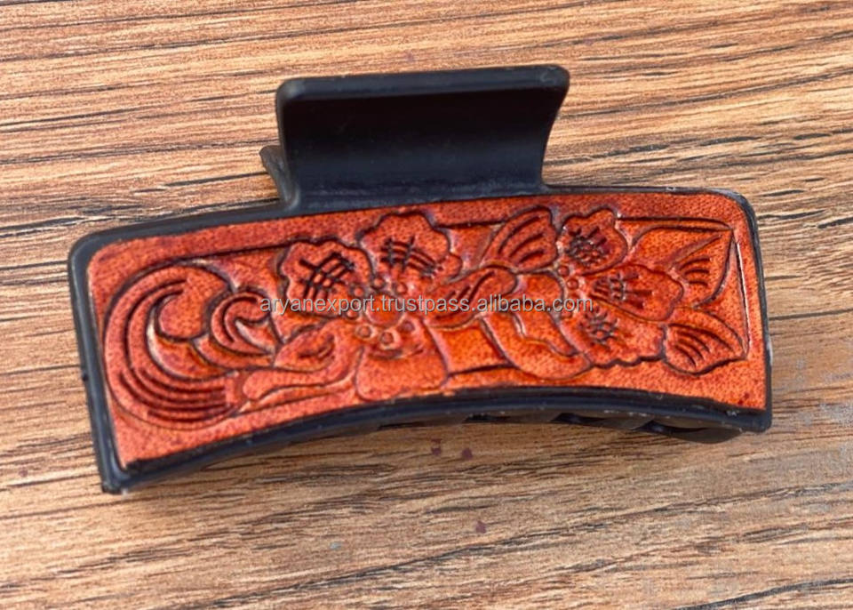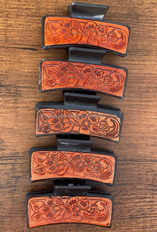 New Arrival Hot Selling Western Stylish Handmade Tooled Engraved Leather Hair Claw Clips Leather Claw Hair Accessories for Women
