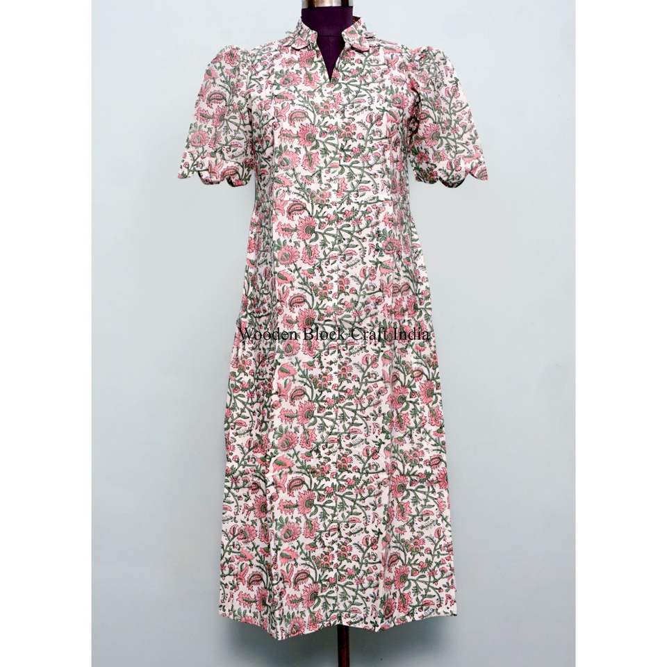 New Arrival Indian A-Line Midi Dress Casual Party Women's Summer One Piece Everyday Comfy 100% Pure Cotton Kangura Floral Print