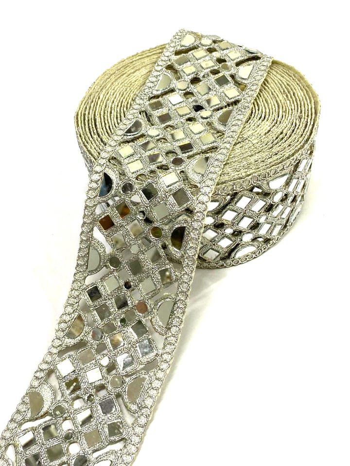 New Arrival Indian High Quality Mirror Metallic Embroidery Lace Trim Flower Lace Use in Footwear Hot Sale