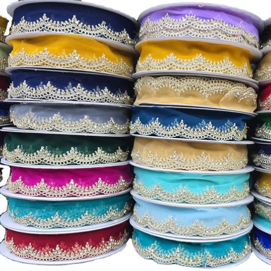 New Arrival Indian High Quality Washable Mirror Metallic Embroidery Lace Trim Flower Lace Use in Footwear and Bags Hot Sale