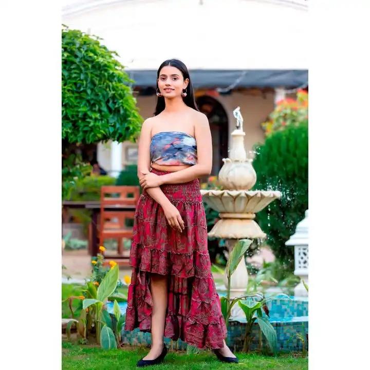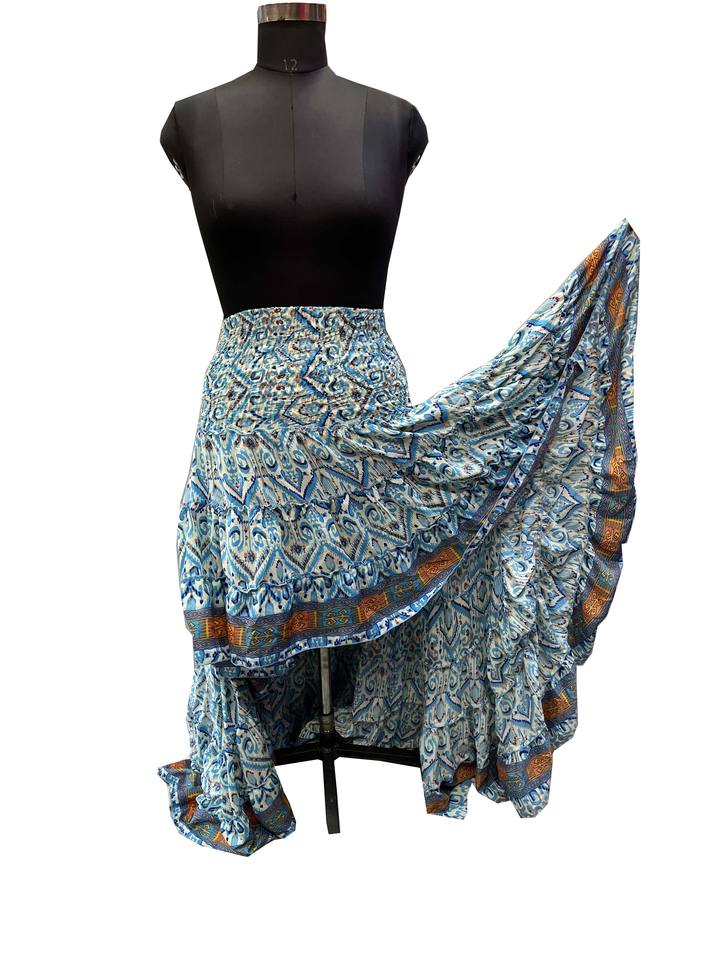 New Arrival Indian Vintage Silk up Down Maxi Skirt Dress Women's Casual Wrap Style Pleat Decorations Free Size Knitted Fabric