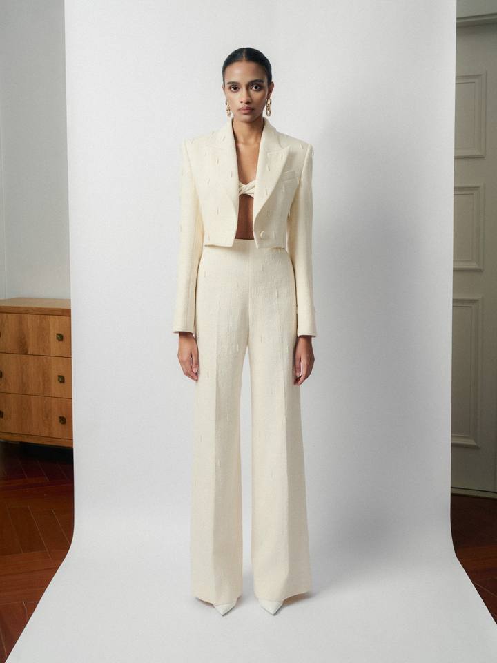New Arrival Jacket For Women Long-Sleeved Anie Emb Wool Cropped Jacket Tweed Organic Cotton Fabric Women'S Clothing Local Brand