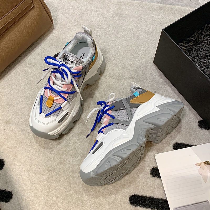 New Arrival Ladies Chunky Heel Sneakers Black High Sole Trainers Breathable and Luxurious for Autumn and Spring