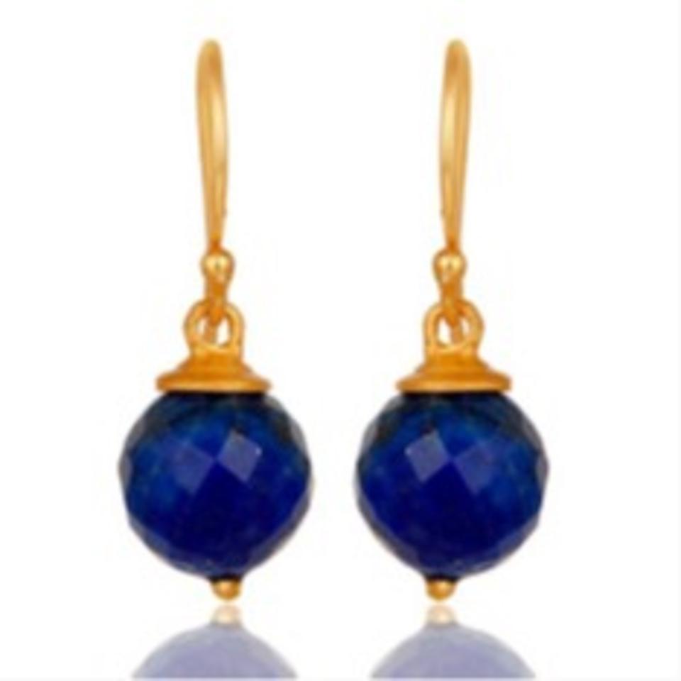 New Arrival Lapis Lazuli Gemstone 925 Sterling Silver Round Shape Earrings
