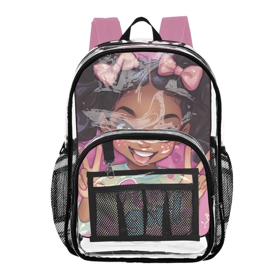 New Arrival Large Size Custom Sublimated Print Transparent PVC Clear Leisure Sports Backpack for Women