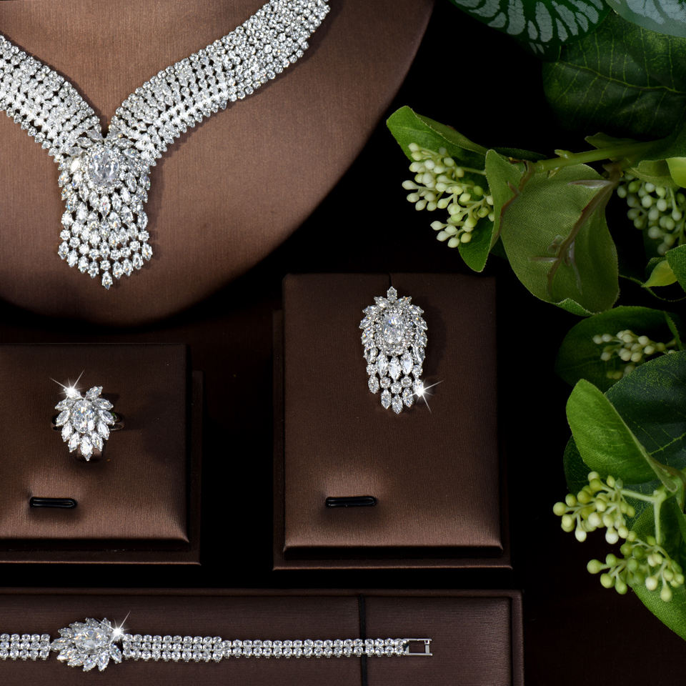 New Arrival Leaf Cubic Zirconia Necklace and Earring Bridal Jewelry Set for Women Prom Wedding Party Jewelry Accessories S-463