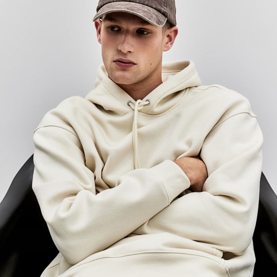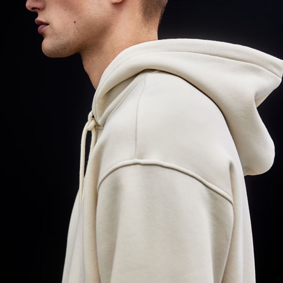 New Arrival Light Beige 100% Cotton Fleece Custom Printed Applique Hoodie Embroidered Kangaroo Pocket Ribbed Hem Loose Fit