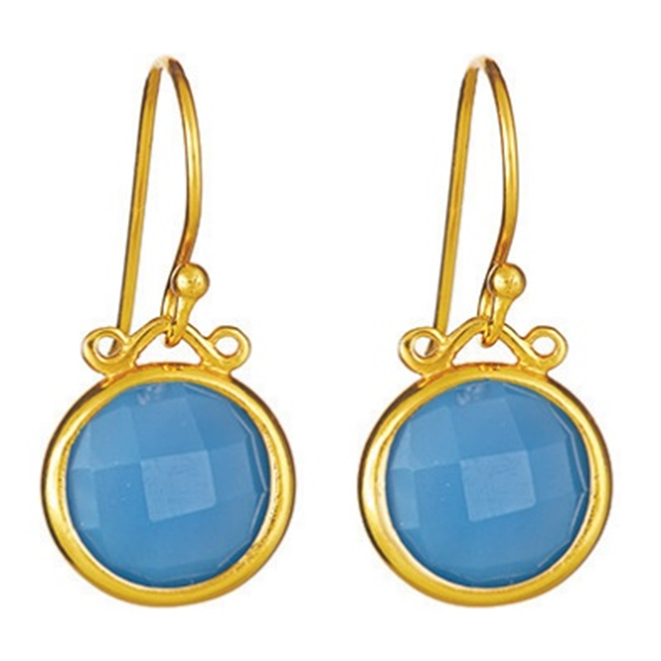 New Arrival Light Blue Chalcedony Gemstone 925 Sterling Round Shape Silver Earrings