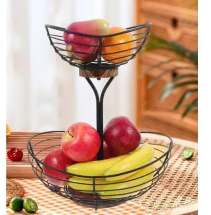 New Arrival Looking Hotel Restaurant Wedding Tabletop Food Storage Black Finishing Fruit 2 Tier Metal Fruit Basket