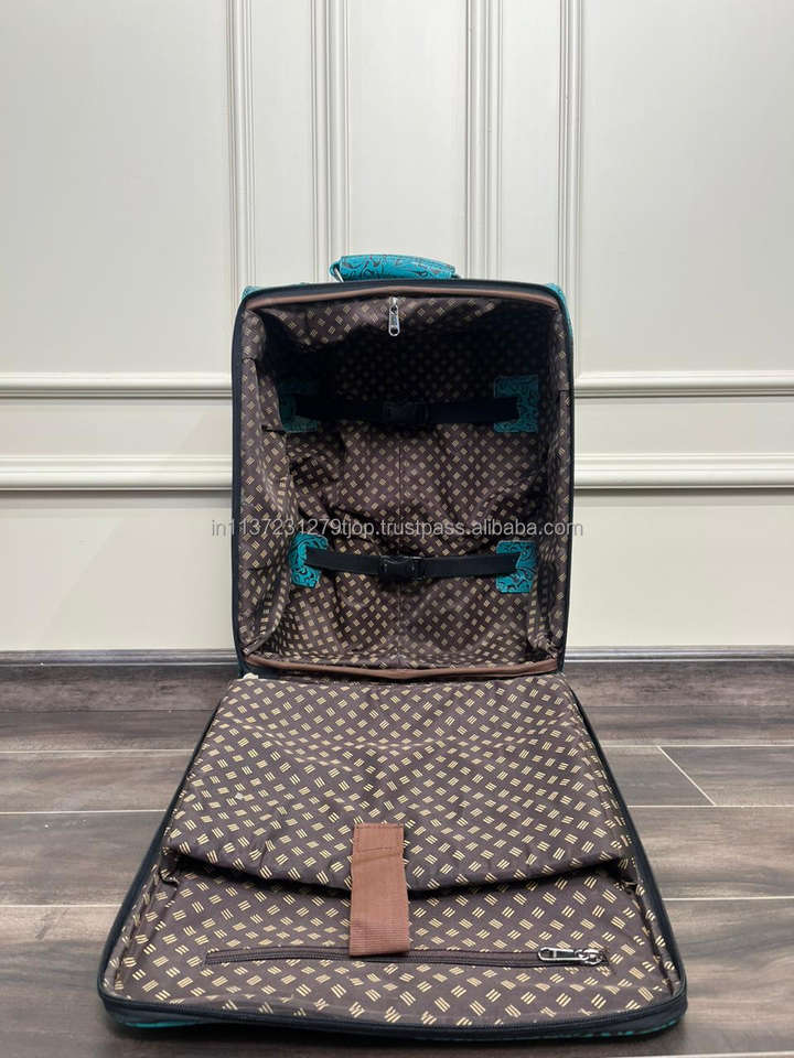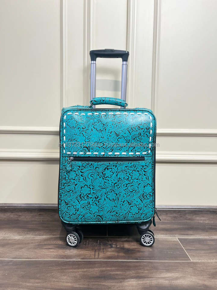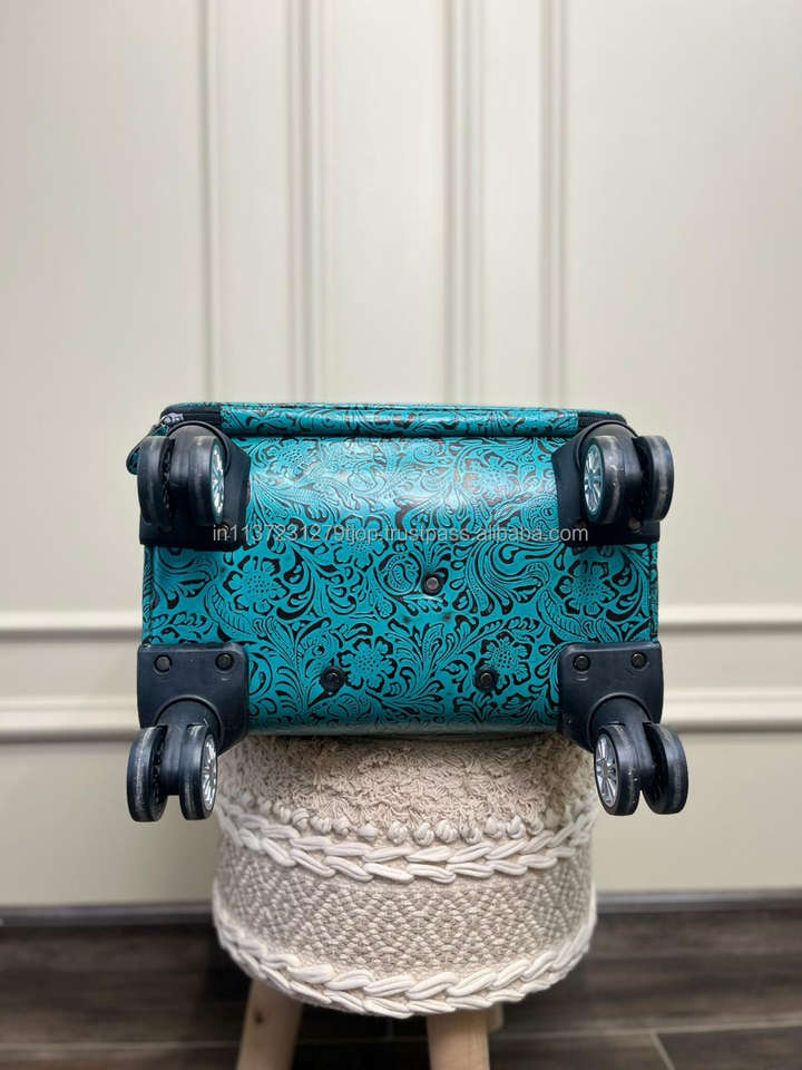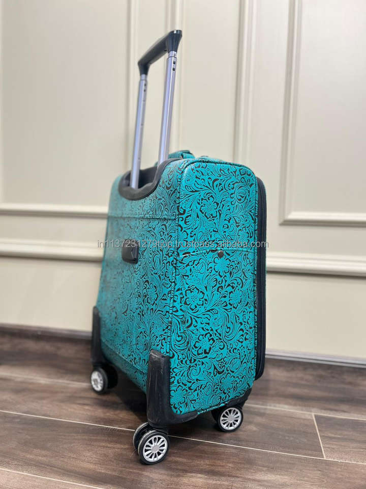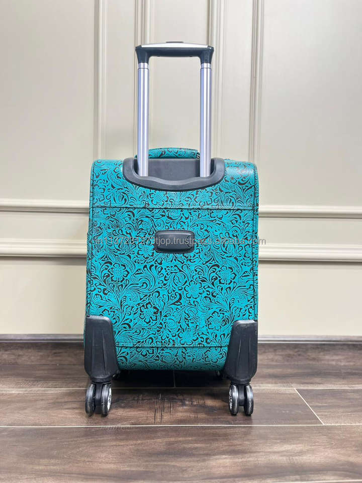 Real Tooled Fur Leather Luggage Trolley Suitcases