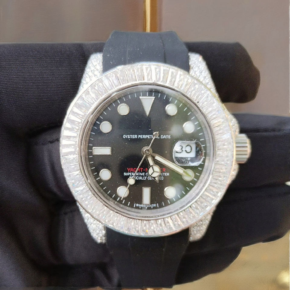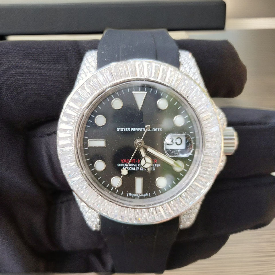 New Arrival Luxurious Diamond-encrusted Mechanical Stainless Steel Sport Hip Hop Watches Leather Strap Sapphire Crystal Pointer