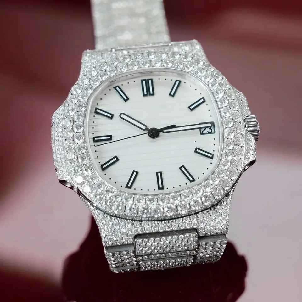New Arrival Luxurious Fashion Hip Hop Style Automatic Moissanite Diamond Watch Sapphire Crystal Water Resistant Stainless Steel
