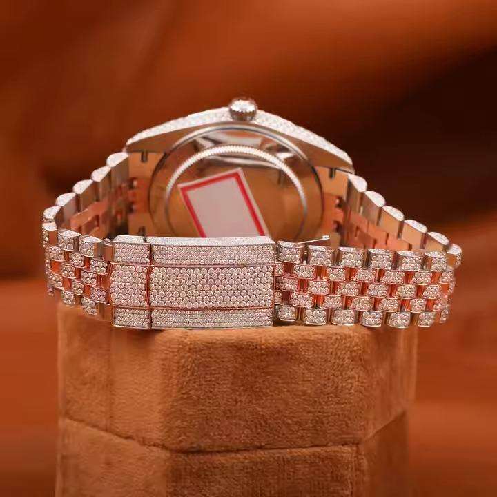 New Arrival Luxury Sport Analog Mechanical Watch High Quality Automatic Movement VVS Moissanite Glass Dial Window Hip Leather