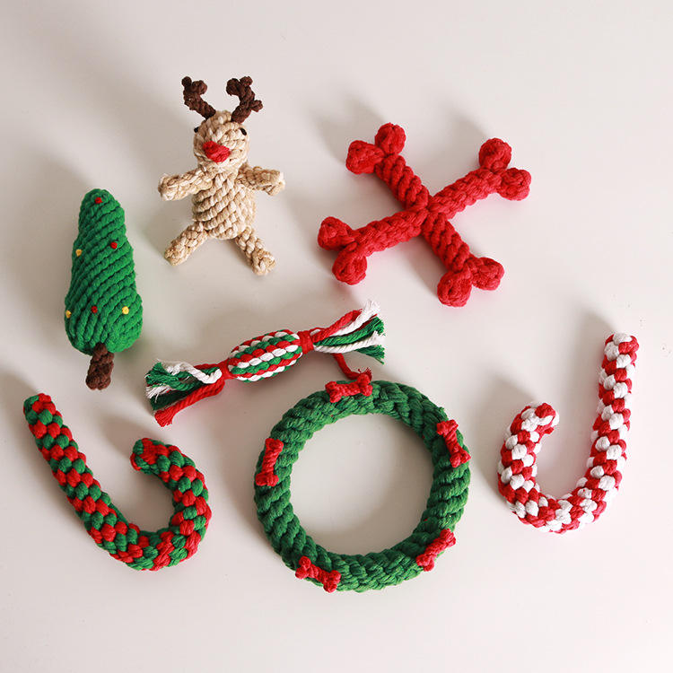 New Arrival Luxury Fashion Modern Cotton Puppy Teething Chew Interactive Christmas Dog Stocking Stuffies Rope Toys for Dogs