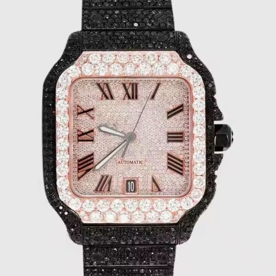 New Arrival Luxury Fashion Quartz Stainless Steel Watch Best Quality Black Bustdown Automatic Iced Diamond Rose Gold Bezel Sport