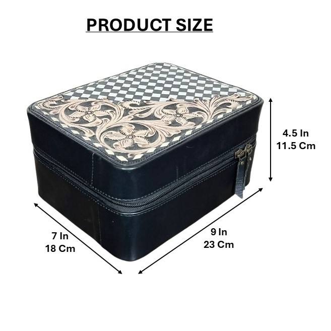 Hand Tooled Genuine Leather Square Jewelry Case